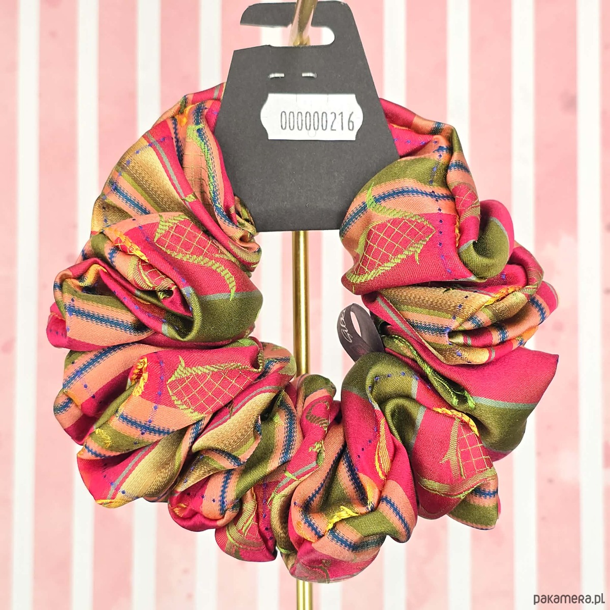 L średnia gumka do włosów jedwab naturalny scrunchie czerwona zielona