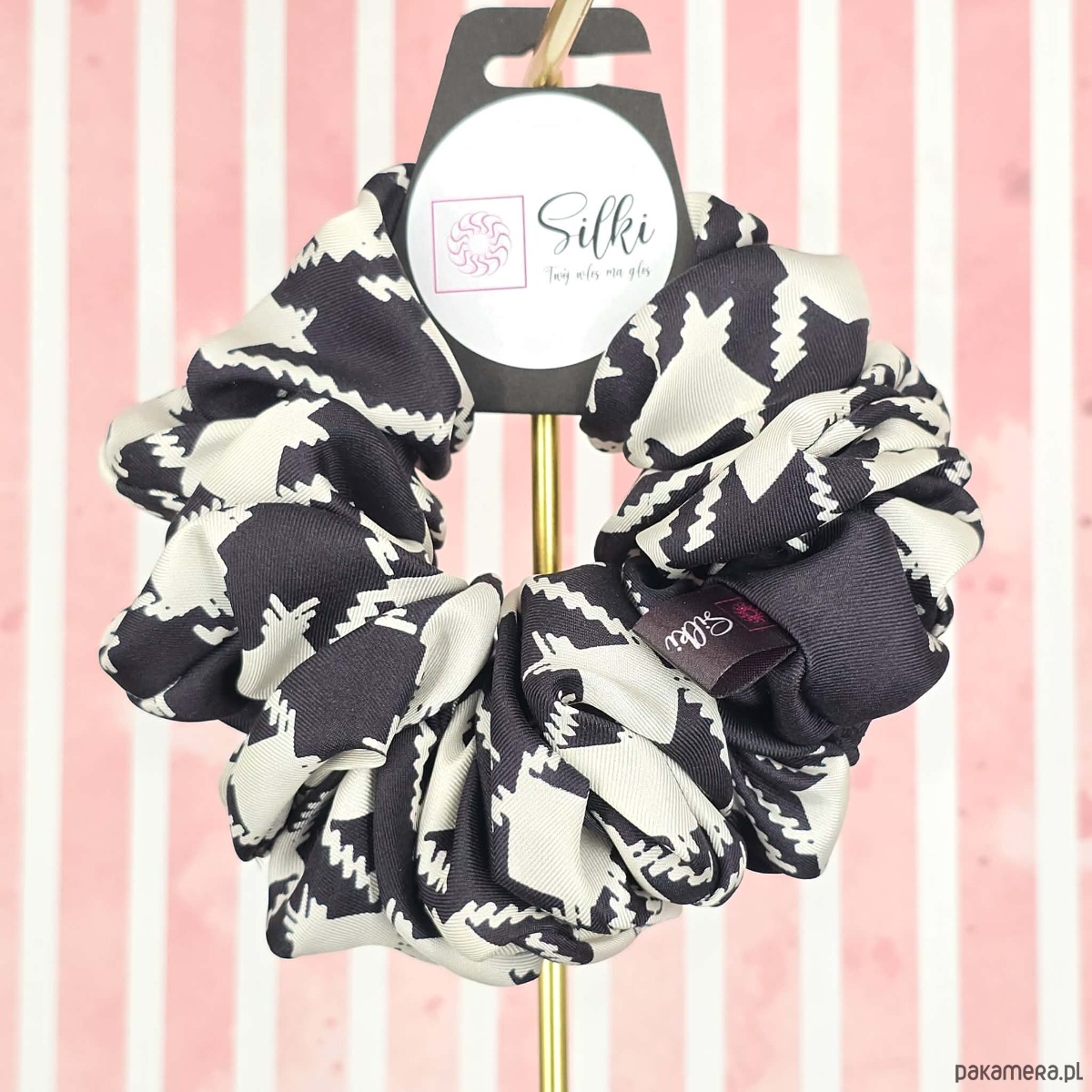L średnia gumka do włosów jedwab naturalny scrunchie czarna biała