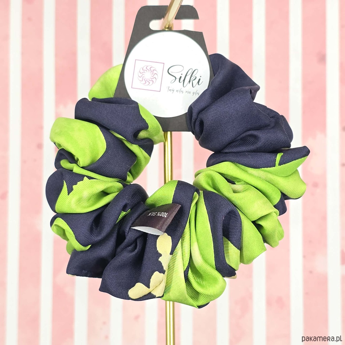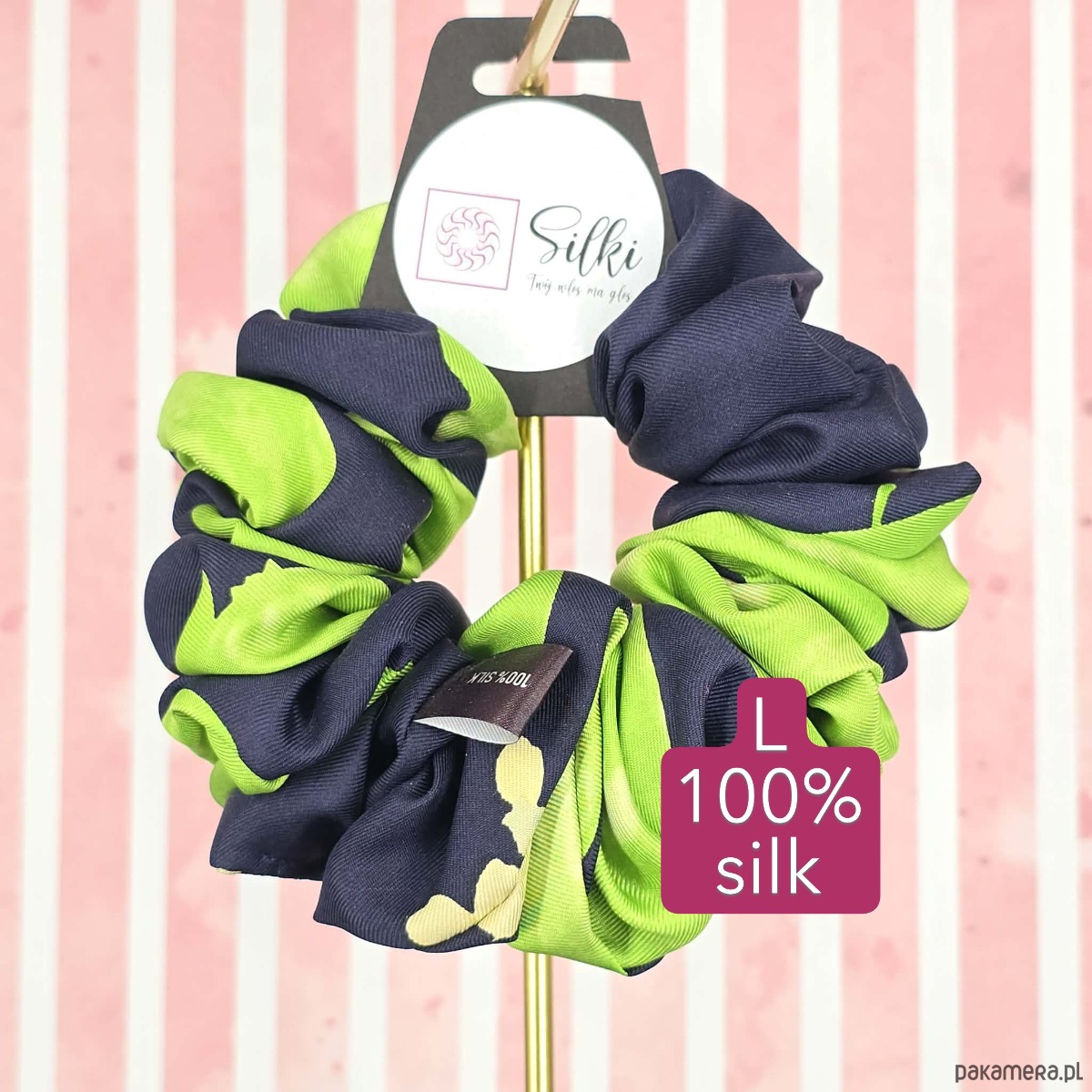 L średnia gumka do włosów jedwab naturalny scrunchie granatowa zielona