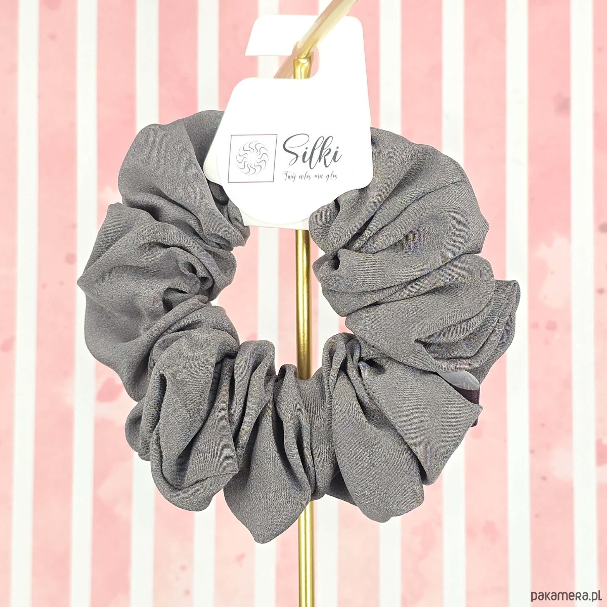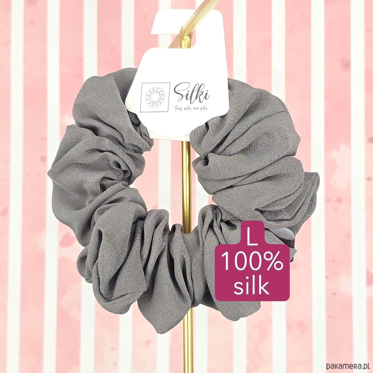 L średnia gumka do włosów jedwab naturalny scrunchie szara basic