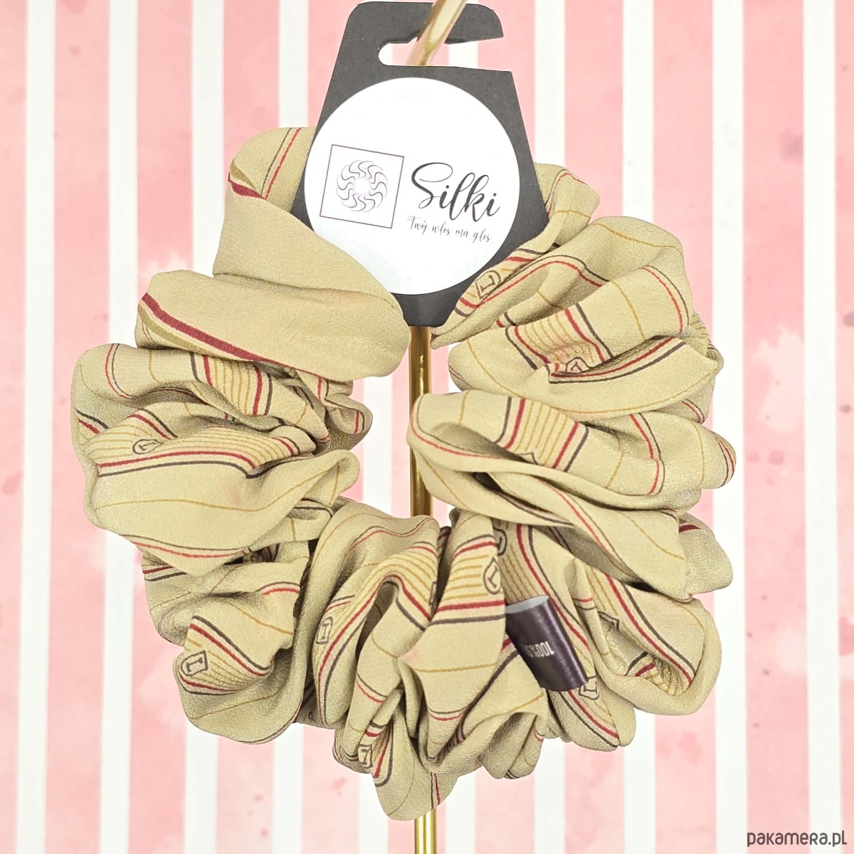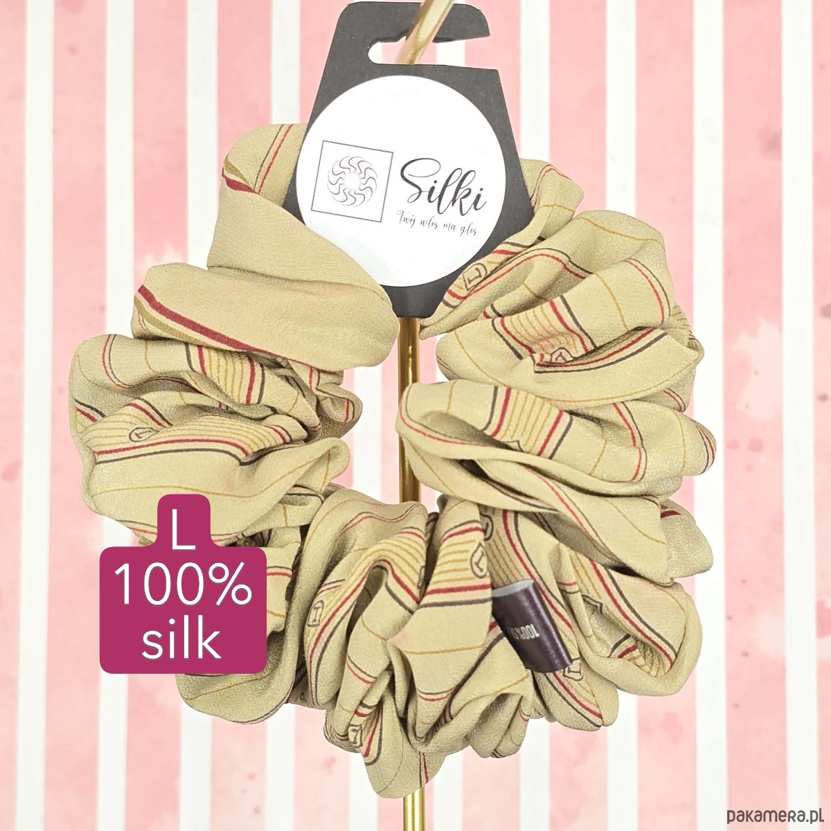 L średnia gumka jedwabna do włosów jedwab naturalny scrunchie beżowa