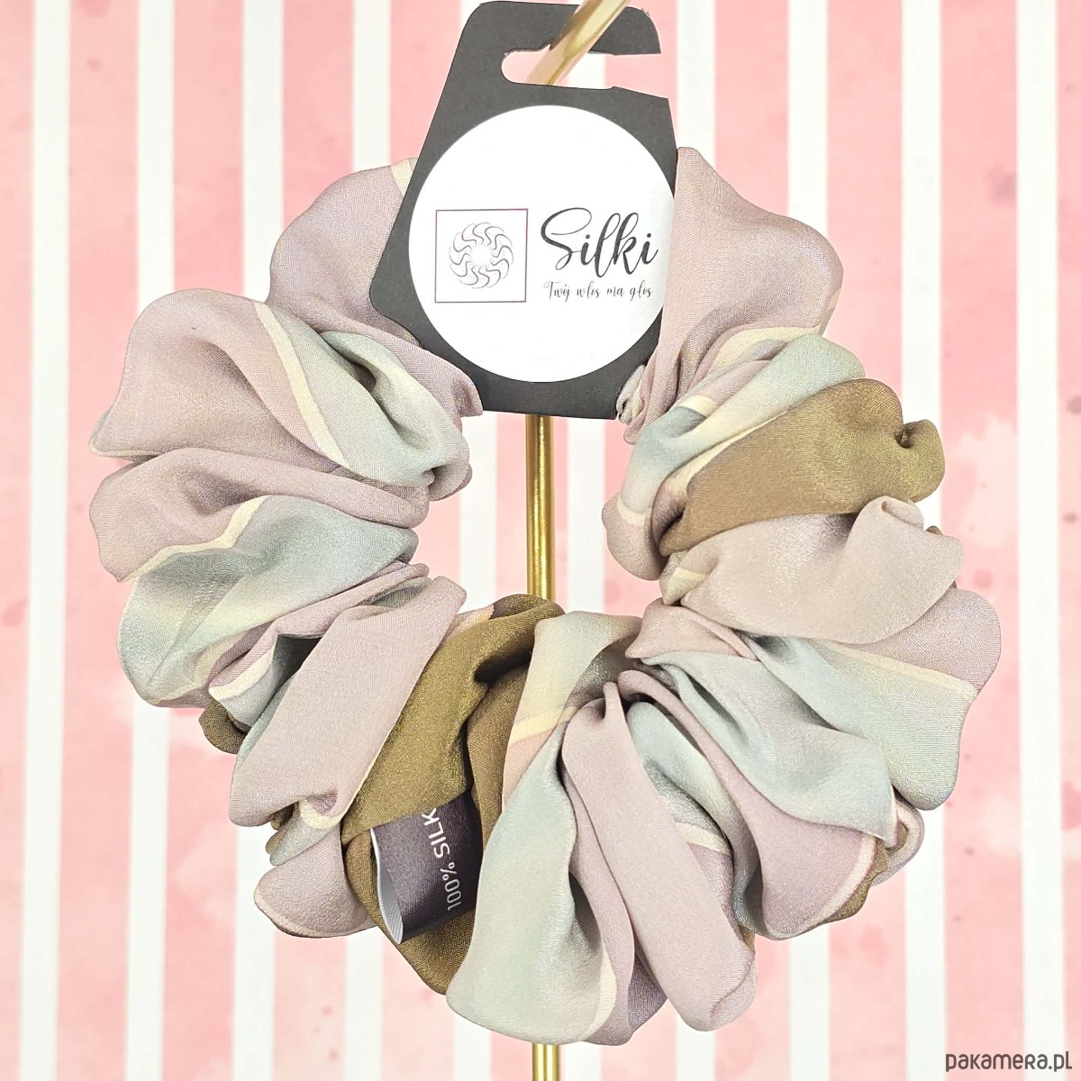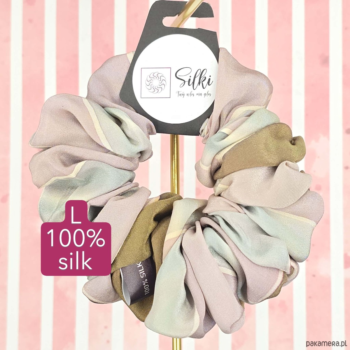 L średnia gumka jedwabna do włosów jedwab naturalny scrunchie pastelowa