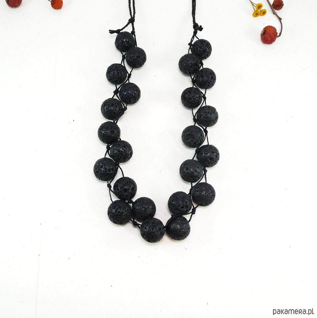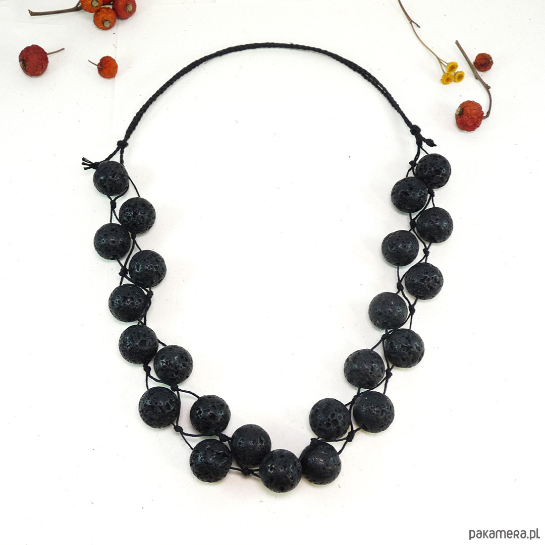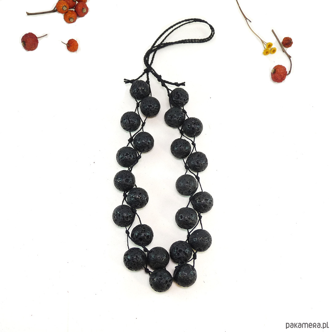 Naszyjnik z dużymi kulami czarnej lawy wulkanicznej