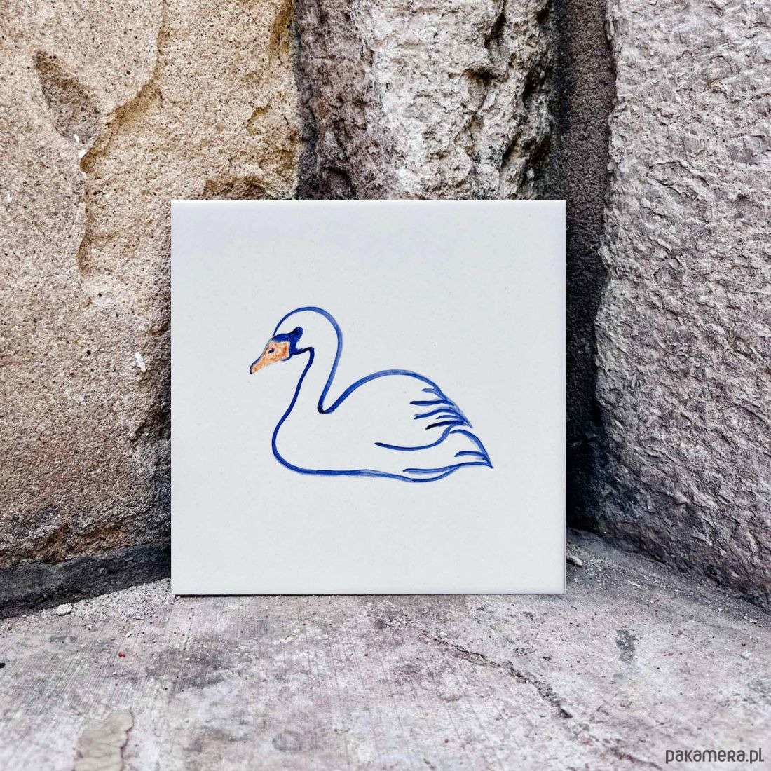 Łabędź namalowany na kafelku