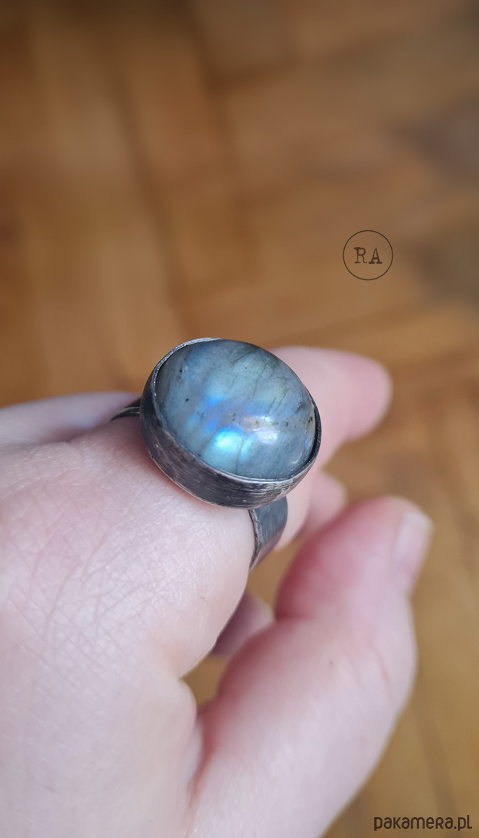 Labradoryt ok. 18mm. Po zakupie prosimy o podanie rozmiaru - dopasujemy obrączkę.