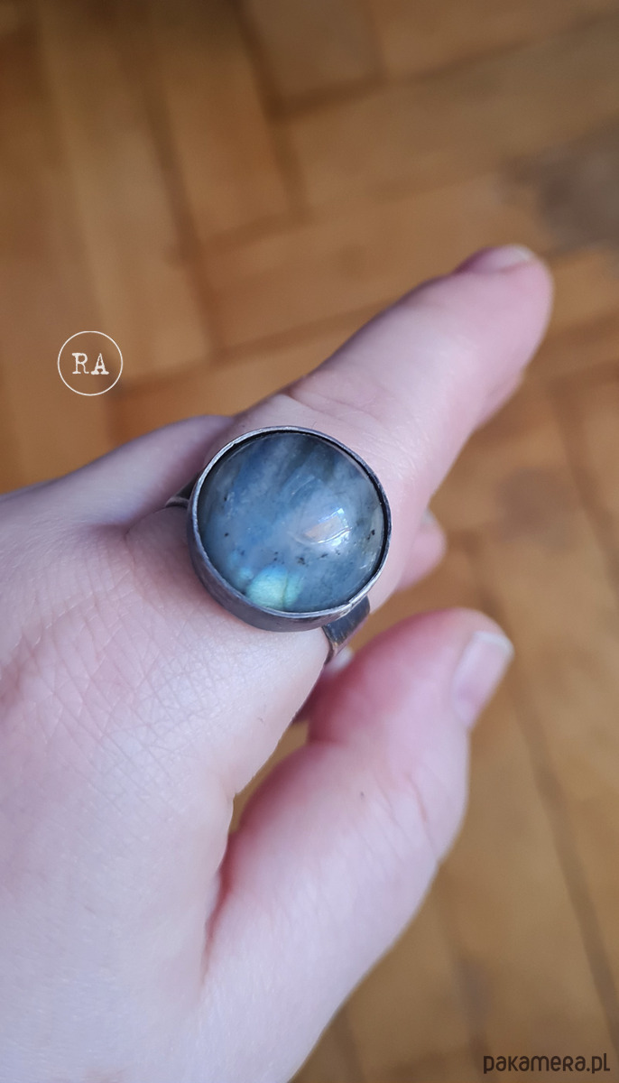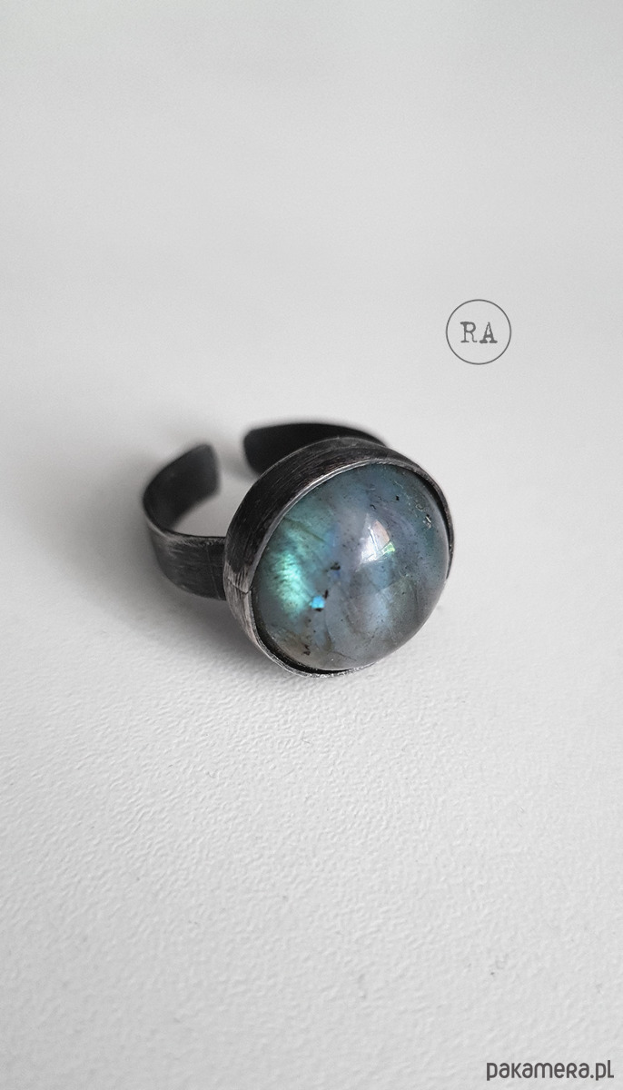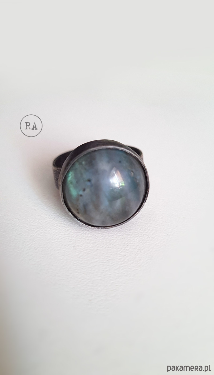 Labradoryt ok. 18mm. Po zakupie prosimy o podanie rozmiaru - dopasujemy obrączkę.