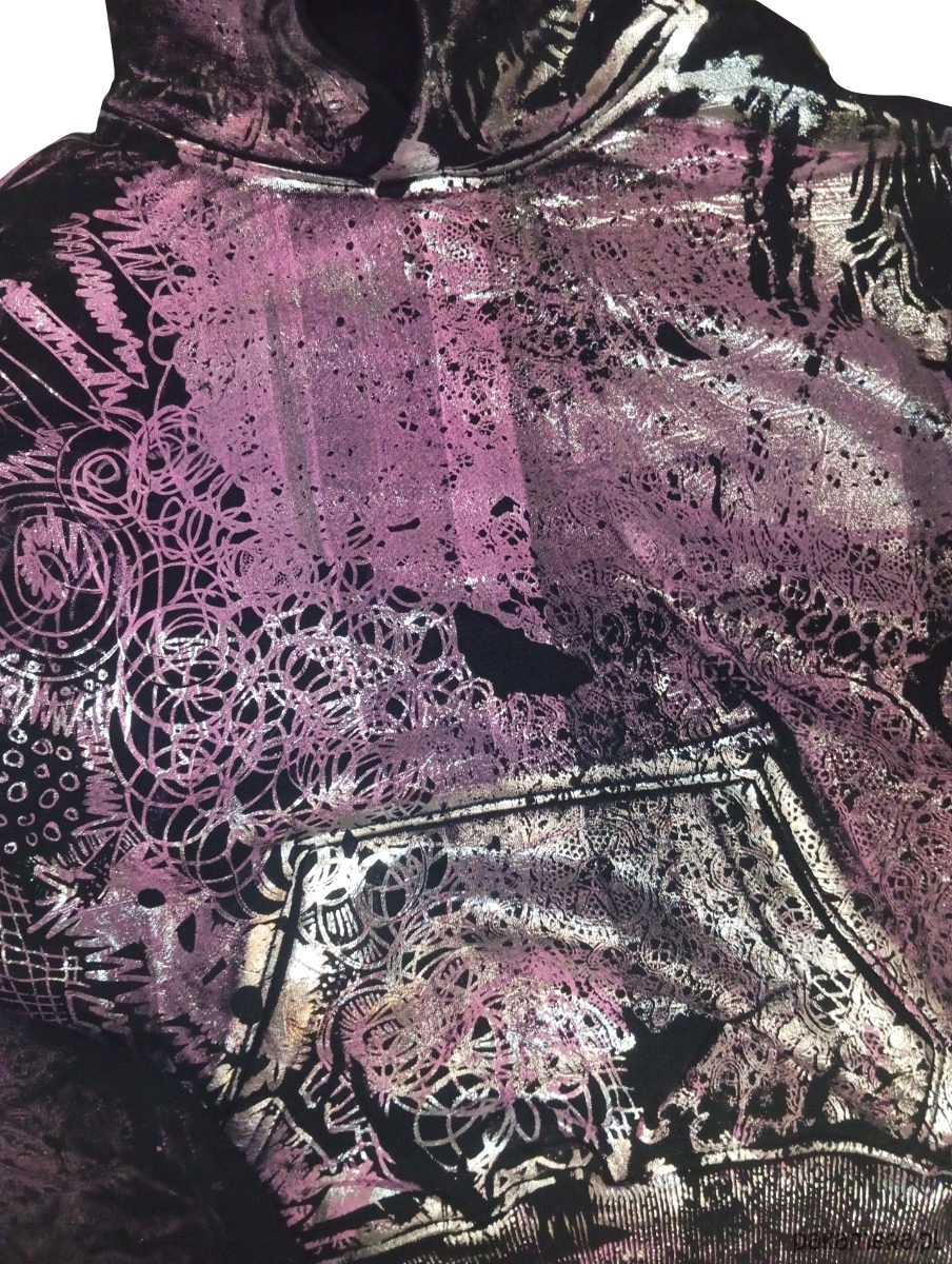 Technika: ręczny sitodruk + mix folii metalizowanych
