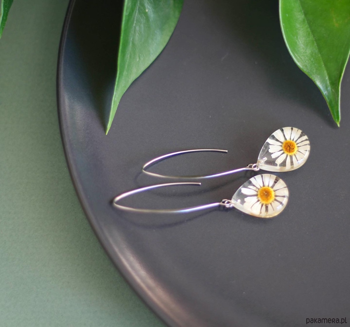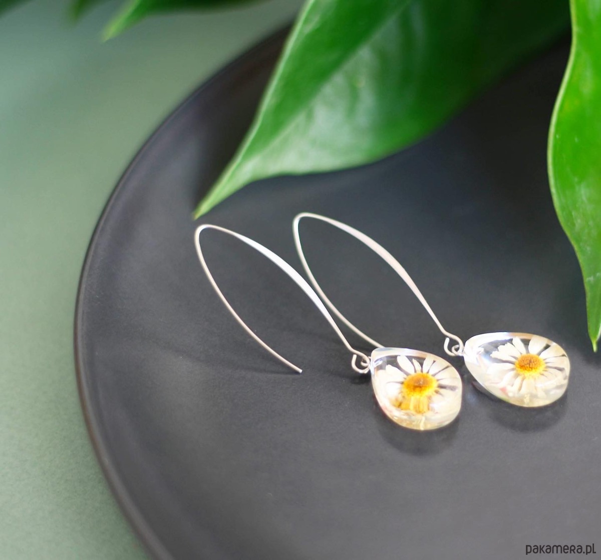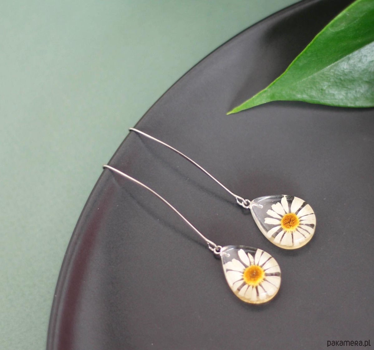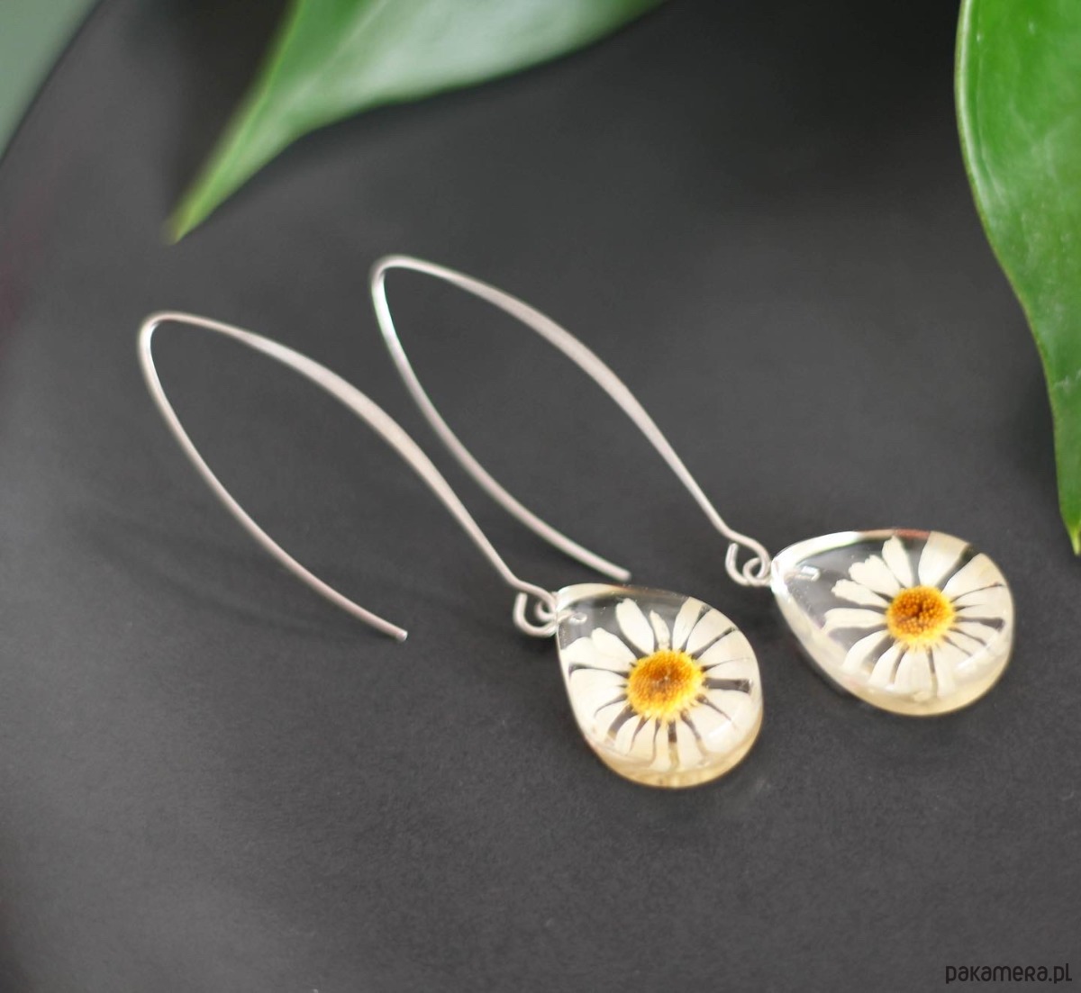 ładne kolczyki z rumiankem w żywice