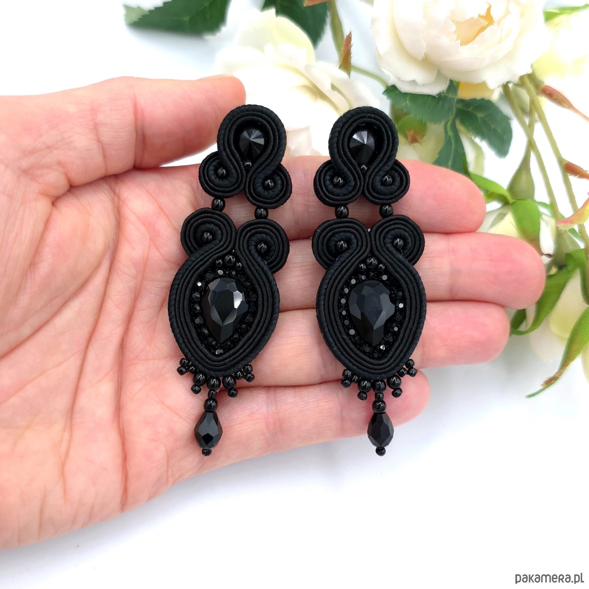 kaboszony kryształki, taśma z cyrkoniami, koraliki Toho, koraliki Round Beads, czeskie i greckie, sznurki sutasz, sztyfty ze stali chirurgicznej.