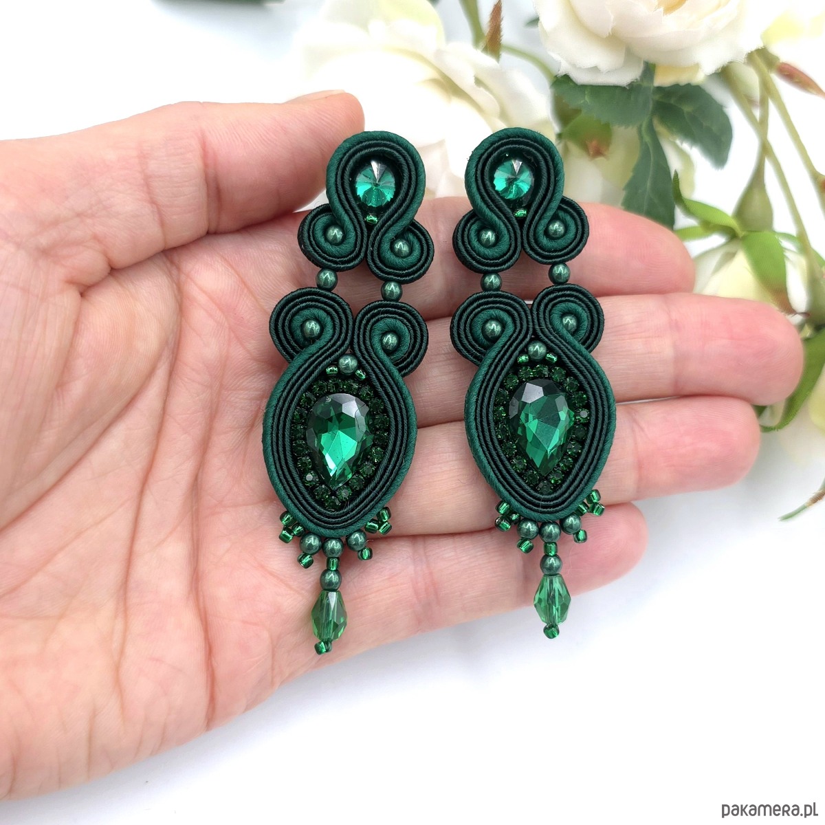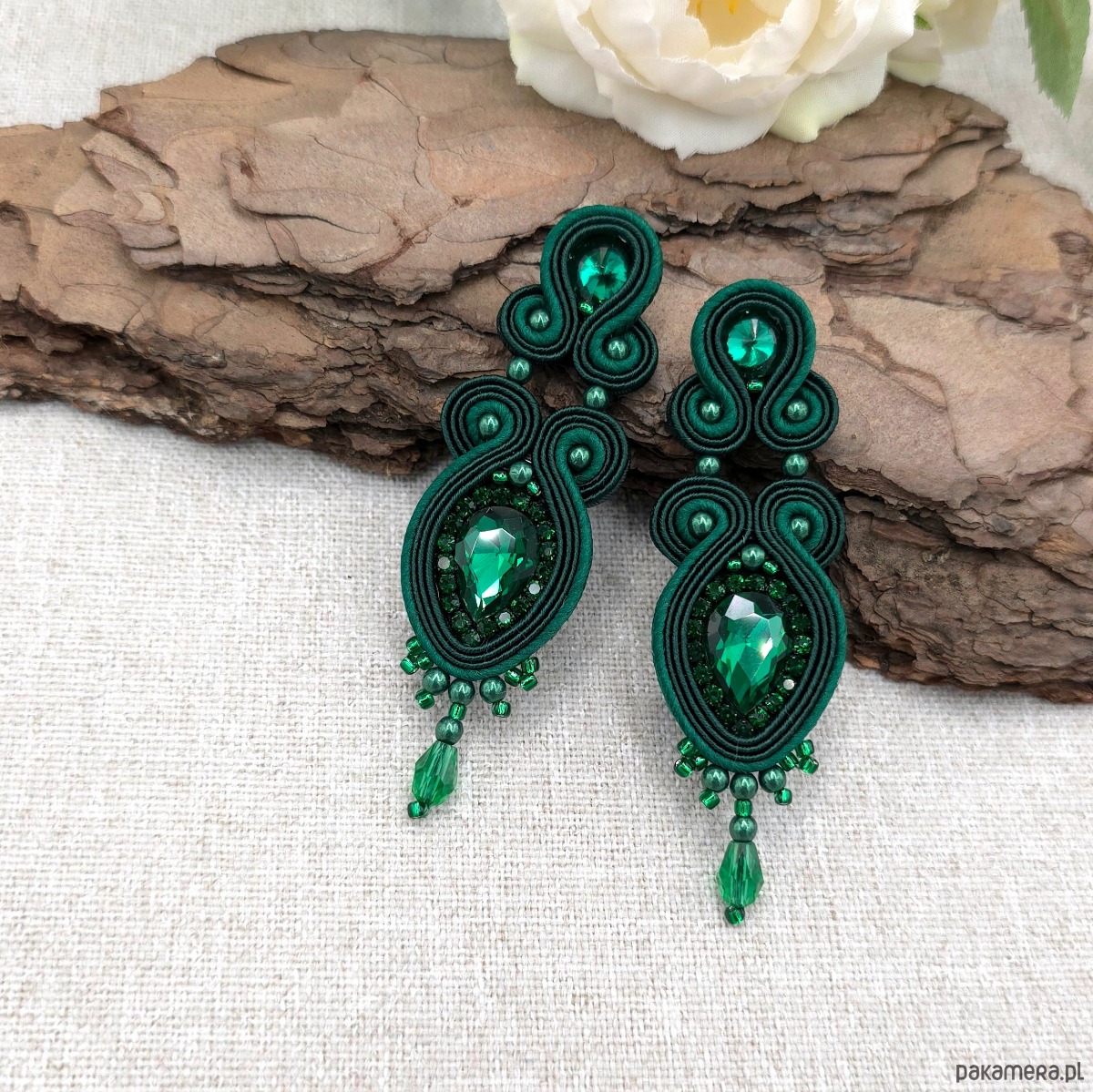 Lady kolczyki sutasz zielone wieczorowe lekkie z kryształkami