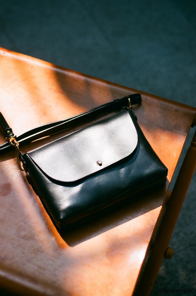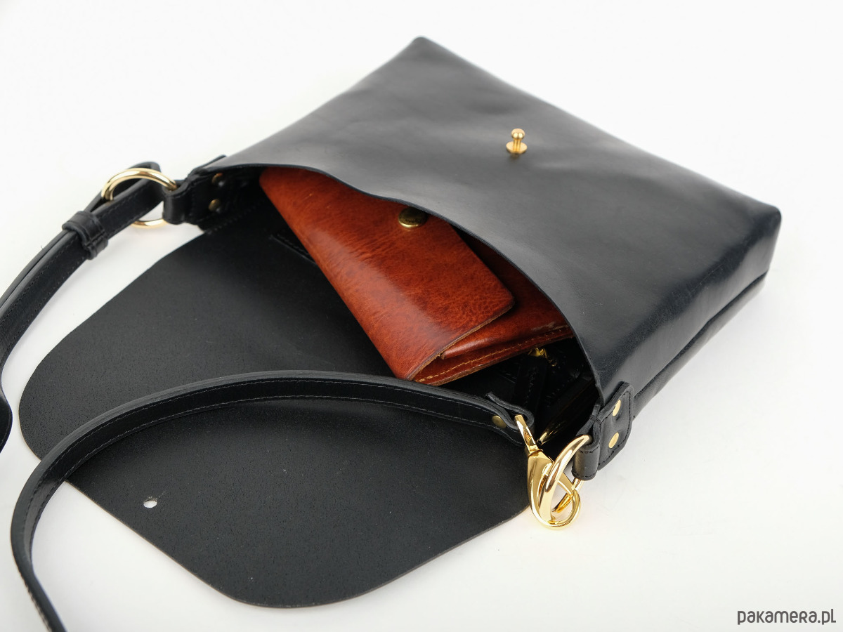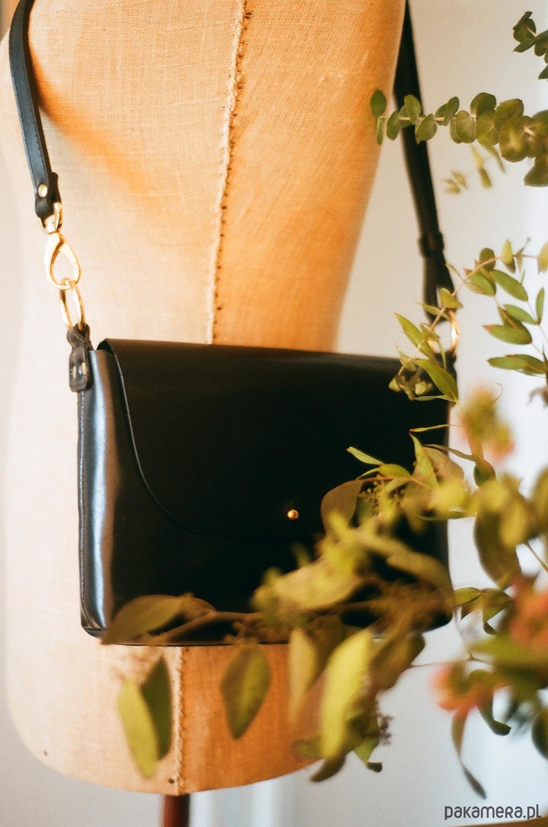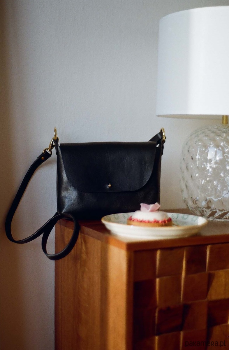 Torebka wykonana ze skóry garbowanej roślinnie w Polsce. Jest mała, ale pomieści najważniejsze rzeczy: komórkę, portfel i różne drobiazgi.
