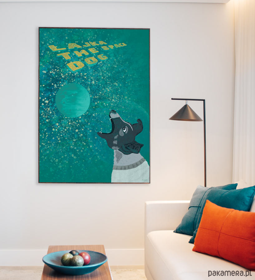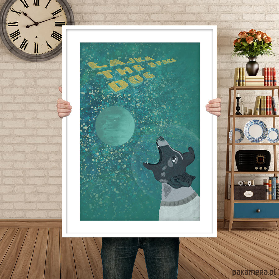 Łajka, kosmiczny pies - plakat 50x70 cm