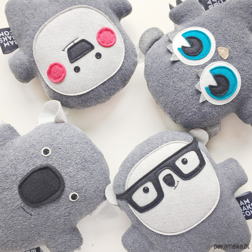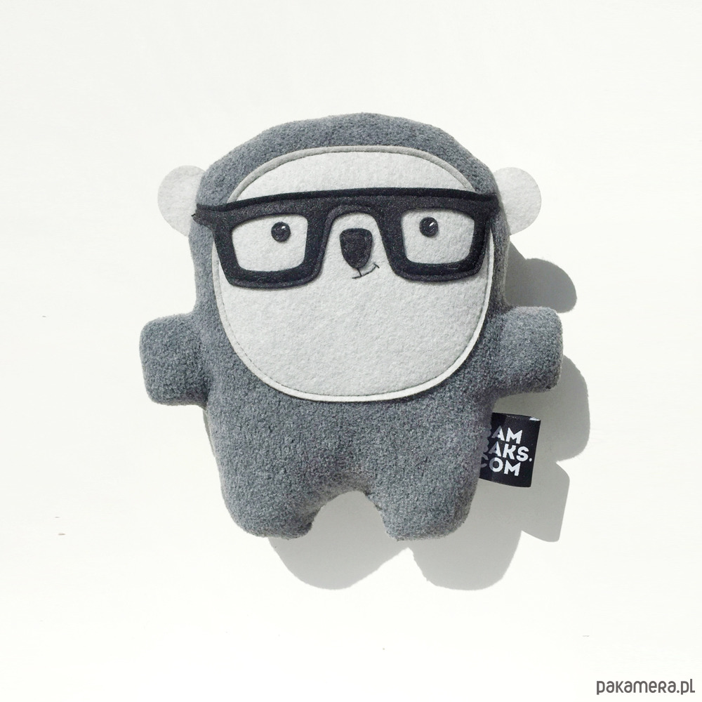 Tadek jest zrobiony jest z grubaśnego polaru w kolorze szarym oraz filcu białego i czarnego. Wypchany jest hypoalergicznym poliestrowym puchem i materiałowymi ścinkami – resztkami z naszej produkcji. Bo tak ekologiczniej jest :).