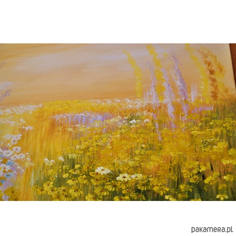 Obraz malowany w technice akrylowej na płótnie naciągniętym na ramę o grubości ok. 2 cm. Boki zamalowane w tonacji całości. Sygnowany. Pokryty werniksem dla ochrony przed wilgocią