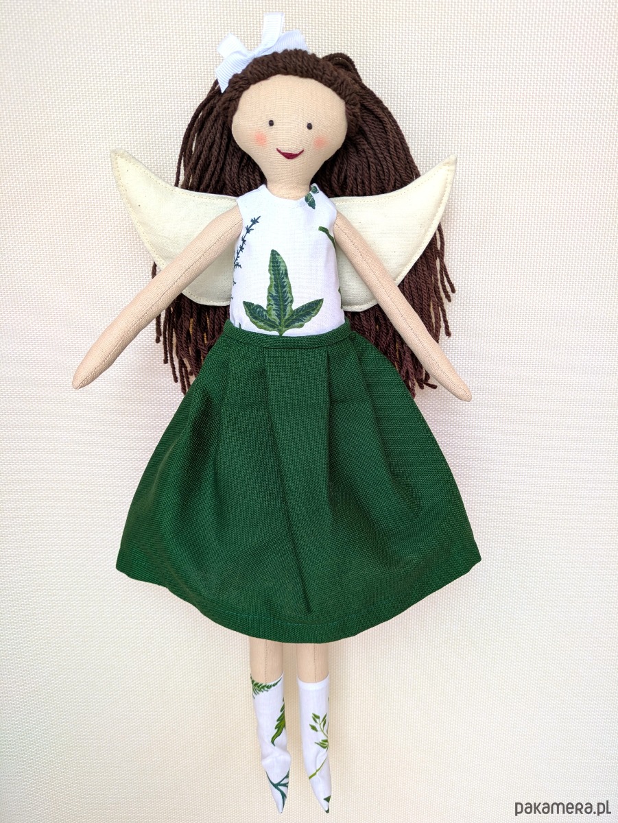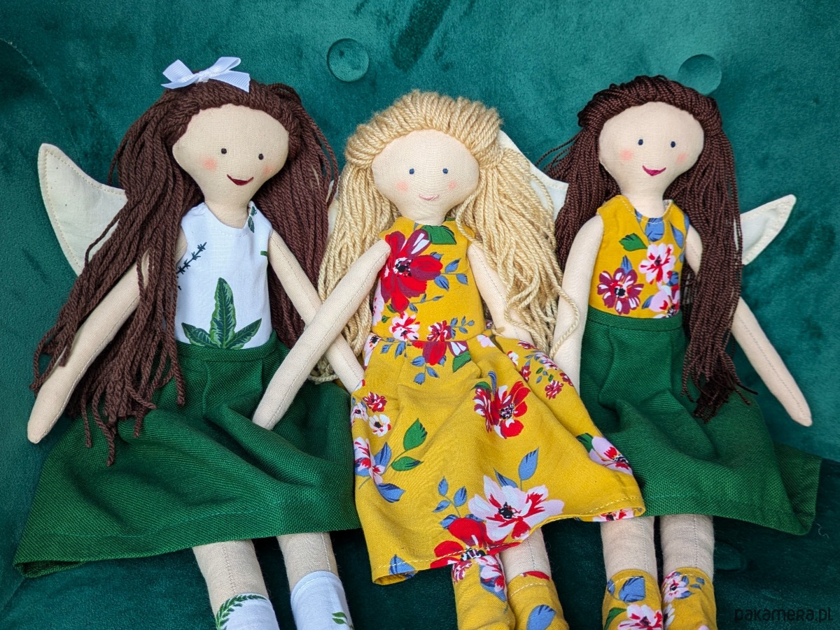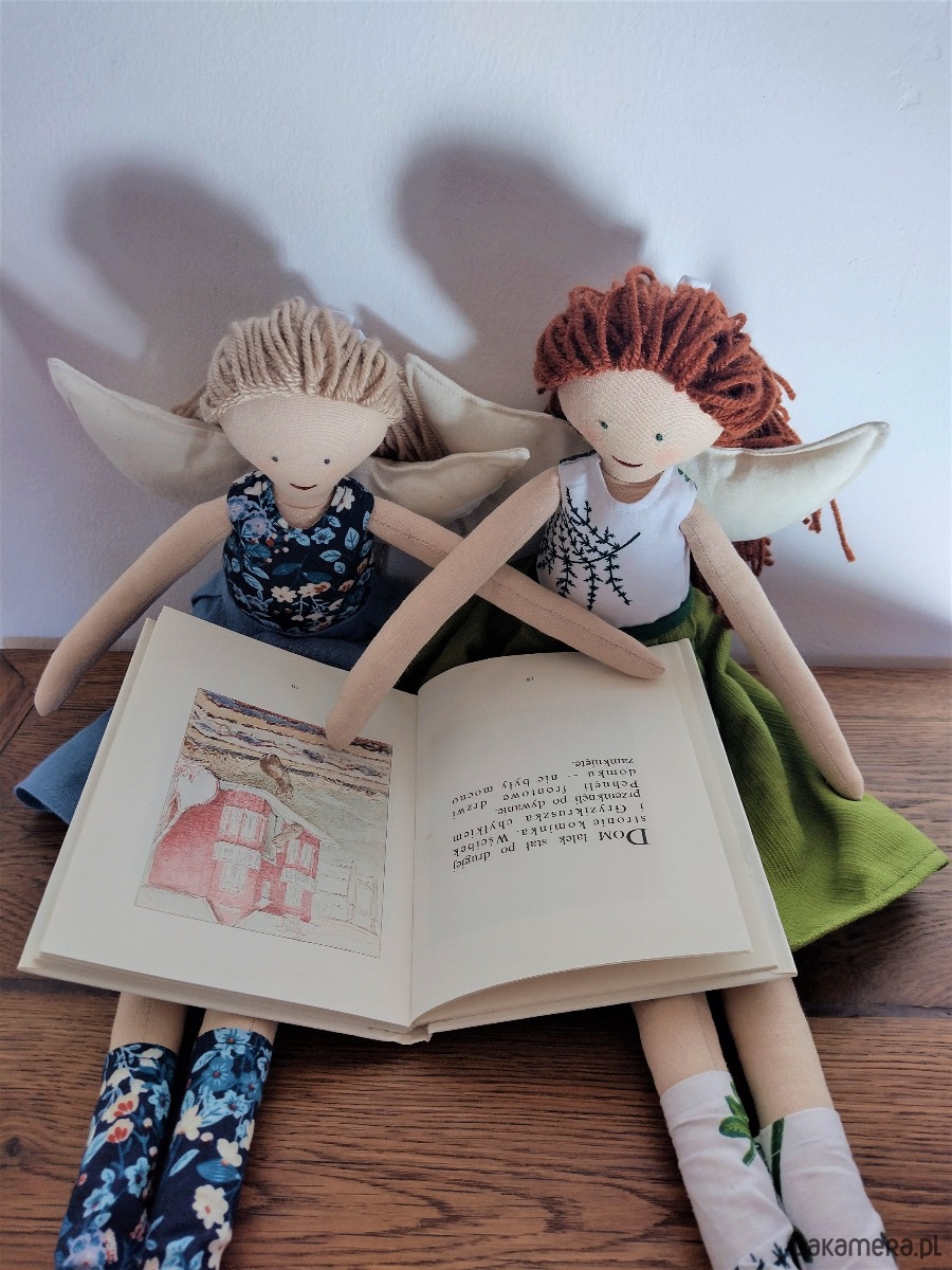 Lalki - anioły to niepowtarzalne rękodzieło dla kolekcjonerów i jednocześnie piękna i wyjątkowa zabawka dla dziecka. Lale są w całości szyte ręcznie w mojej pracowni. Do stworzenia ubranek wykorzystuję fragmenty naturalnych tkanin, pozostałe po szyciu miarowym dla klientek. Ubranka są zdejmowane, a skrzydła przypinane na guziki, można więc bawić się w przebieranie i powiększać garderobę lalek oraz zmieniać fryzury z włóczkowych włosów.