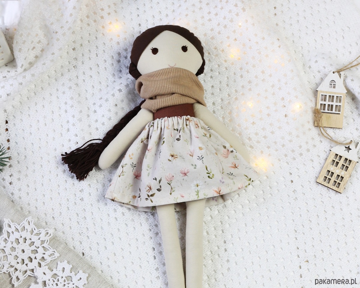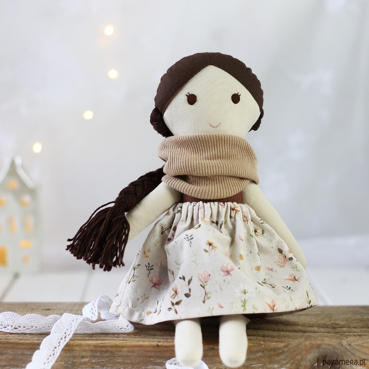 Stworzona do przytulania – lala uszyta z bawełny, wypełniona antyalergiczną kulką silikonową, buzię ma ręcznie wyszywaną wysokiej jakości muliną,