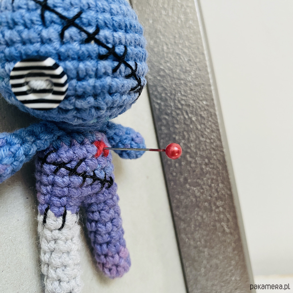 - 100% rękodzieło – każda laleczka ma własny charakter (i swoje humorki); wykonana z włóczki bawełniano-akrylowej, wypełniona kulką silikonową, w zestawie szpilka (patrz niżej ;))