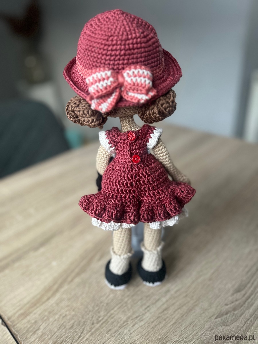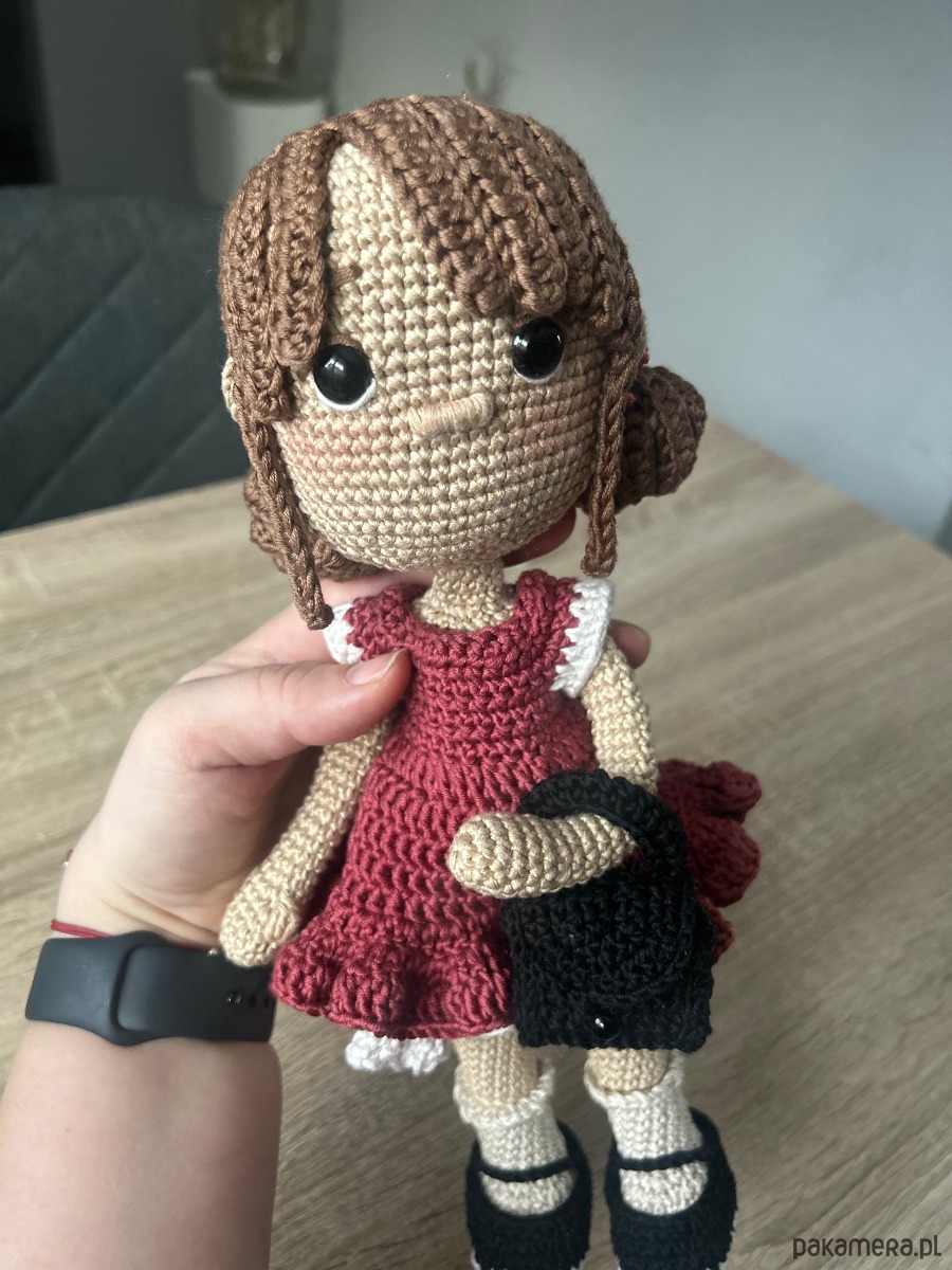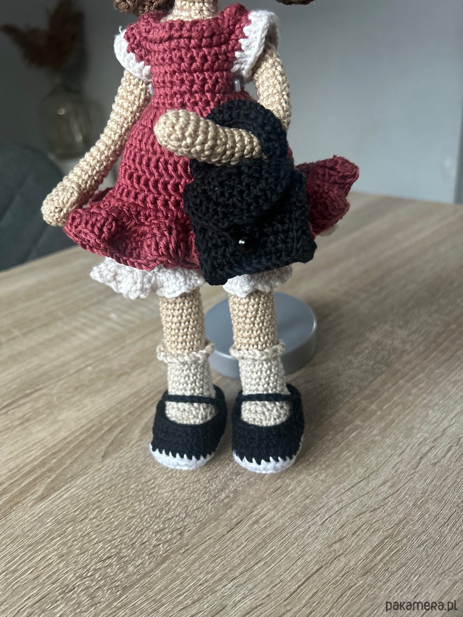 Ręcznie robiona lalka Amigurumi o wysokości 30cm. Wykonana na szydełku z dbałością o szczegóły. Doskonała jako unikatowy prezent dla miłośników rękodzieła i oryginalnych zabawek. Idealna do kolekcji lub jako maskotka.