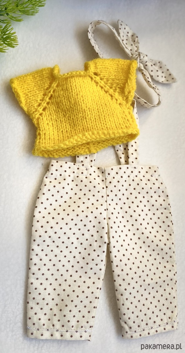 By zabawa trwała dłużej w przebieranie, dodaję dodatkowo jeden komplet ubranka od siebie. (spodnie ogrodniczki z opaską lub szalikiem, spodnie do pasa z bluzką i opaską lub szalikiem, sukienka z opaską).