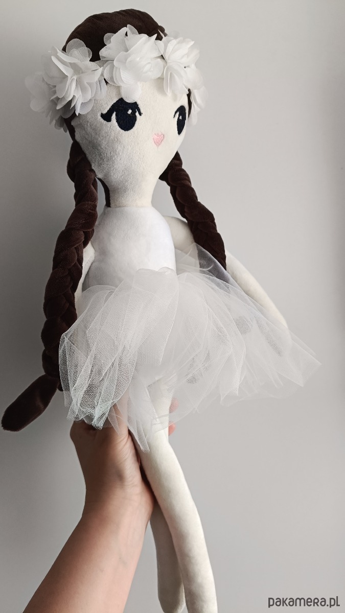 - lalka nie posiada plastikowych elementów ani gumowej główki – jest w całości tekstylna.