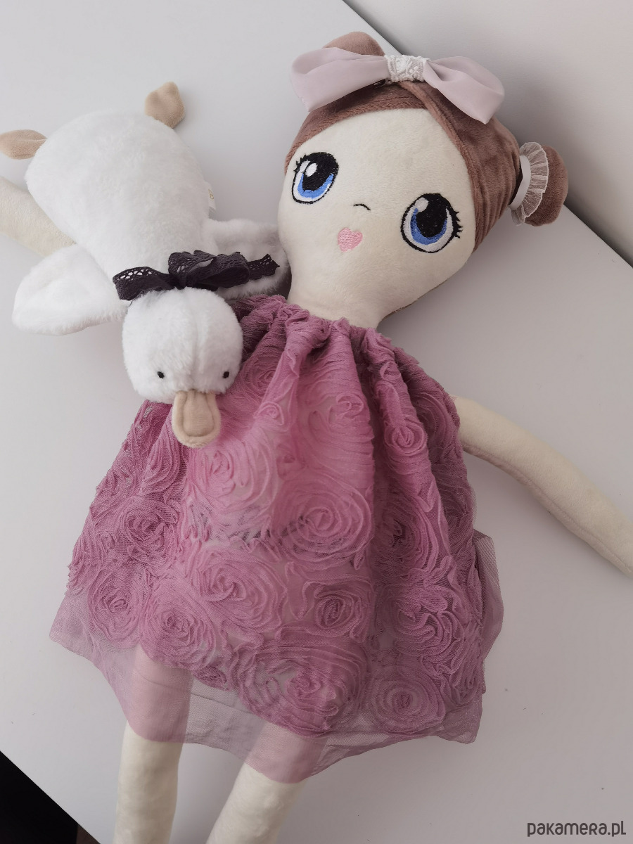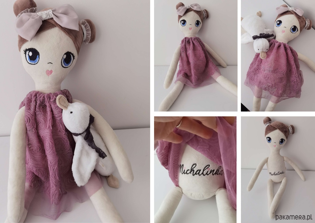 Szukasz wyjątkowego prezentu dla małej dziewczynki na urodziny, święta, dzień dziecka - dobrze trafiłeś. Prezentowana lala jest sporych rozmiarów. Jest tylko troszkę mniejsza od "starszej siostry" która ma 90 cm).Wykonana z bardzo miłej w dotyku tkaniny minky. Wypchana antyalergicznym puchem. Na lalce haftujemy imię dziecka w ustalonej czcionce i kolorze. Szyta jest na zamówienie i może być dowolnie modyfikowana, tak aby pasowała do dziecka, do którego ma trafić.