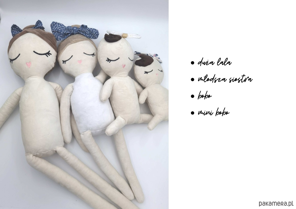 - jak ma wyglądać lala: kolor włosów, fryzura (np. koczek, warkoczyki), czy ma być cielista czy posiadać biały korpus (body), czy doszyć skrzydełka (lalka - aniołek), styl ubranka (np. boho, sportowy), dodatki (np. korona, kokardki, wianek).