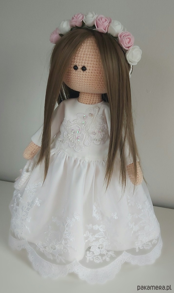 Urocza lalka wykonana na szydełku to idealny prezent dla dziewczynki na taka uroczystość.