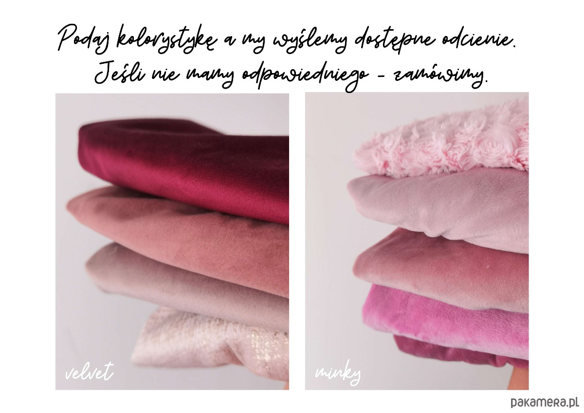 Szyjemy ją z mięciutkiej tkaniny minky. Wypełniamy ją antyalergicznym puchem.