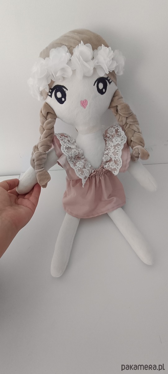 Szukasz wyjątkowego prezentu dla małej dziewczynki na urodziny, święta, dzień dziecka - dobrze trafiłeś. Nasze lale są szyte na zamówienie, przez co możemy je dowolnie modyfikować i dopasować do dziecka do którego mają trafić (zmienić fryzurę, kolor włosów, oczy - otwarte, zamknięte, styl ubranka). Dodatkowo haftujemy na nich imię dziecka. Wykonujemy je z bardzo miłej w dotyku tkaniny - minky. Wypchamy antyalergicznym puchem. Jest idealna nie tylko do zabaw ale i do przytulania. Dodatkowo stanowi piękną ozdobę pokoju.