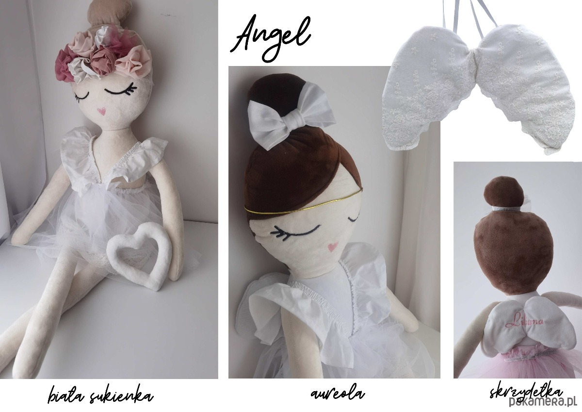 Jest ogromna - ma 90 cm!. Dla malutkich dzieci będzie piękną ozdobą pokoju, zaś dla starszych - przytulanką, zabawką. Szyta jest na zamówienie i może być dowolnie modyfikowana (np. mieć inną fryzurę, kolor włosów, ubranko, dodatki) tak aby pasowała do dziecka do którego ma trafić. Na lalce haftujemy imię dziecka w ustalonej czcionce i kolorze. Wykonana jest z bardzo przyjemnego materiału - minky, posiada antyalergiczne wypełnienie. Do lalki pasują małe ubranka po dziecku - sukienki, tuniczki - można ją dowolnie przebierać, nakładać opaski, koraliki.