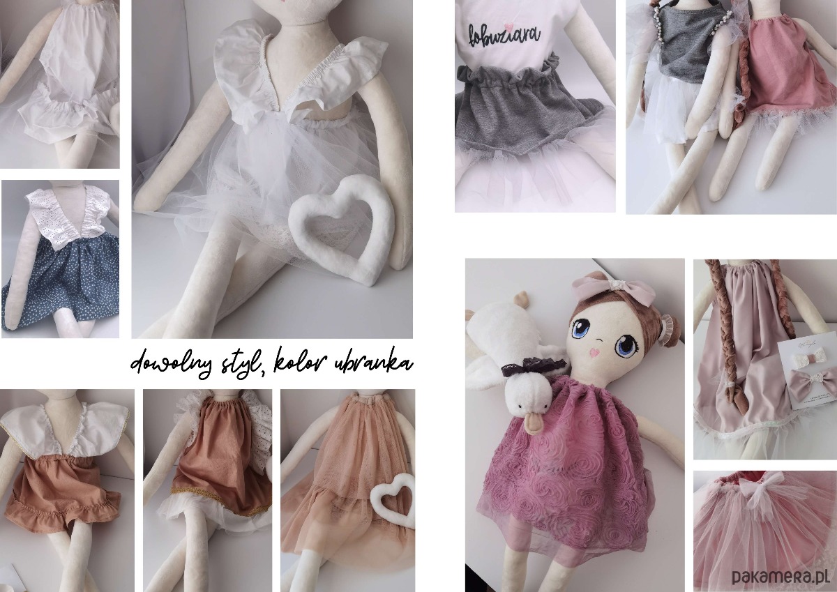- jak ma wyglądać lala, fryzura (np. jeden koczek, grzywka, warkoczyki, koloru włosów), czy lalka ma być cała cielista czy ma mieć biały korpus (body) i/ lub skarpetki, czy lala ma posiadać skrzydełka (lalka - aniołek), styl ubranka (np. glamour, boho , sportowy), dodatki (np. korona, kokardki, wianek)