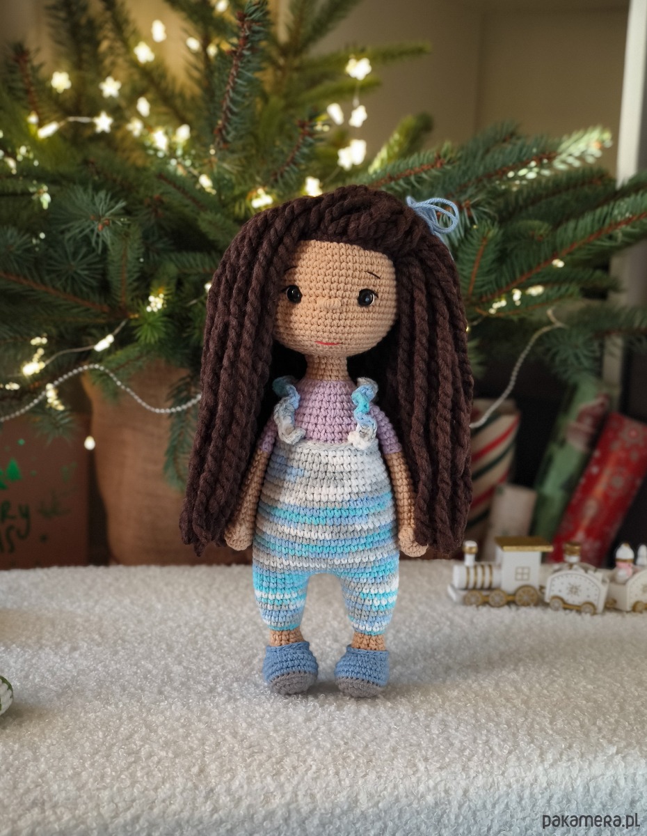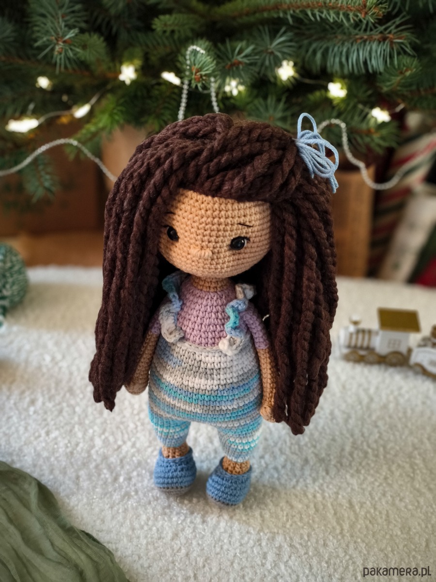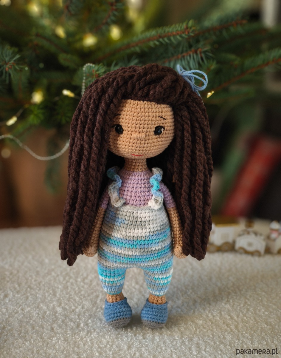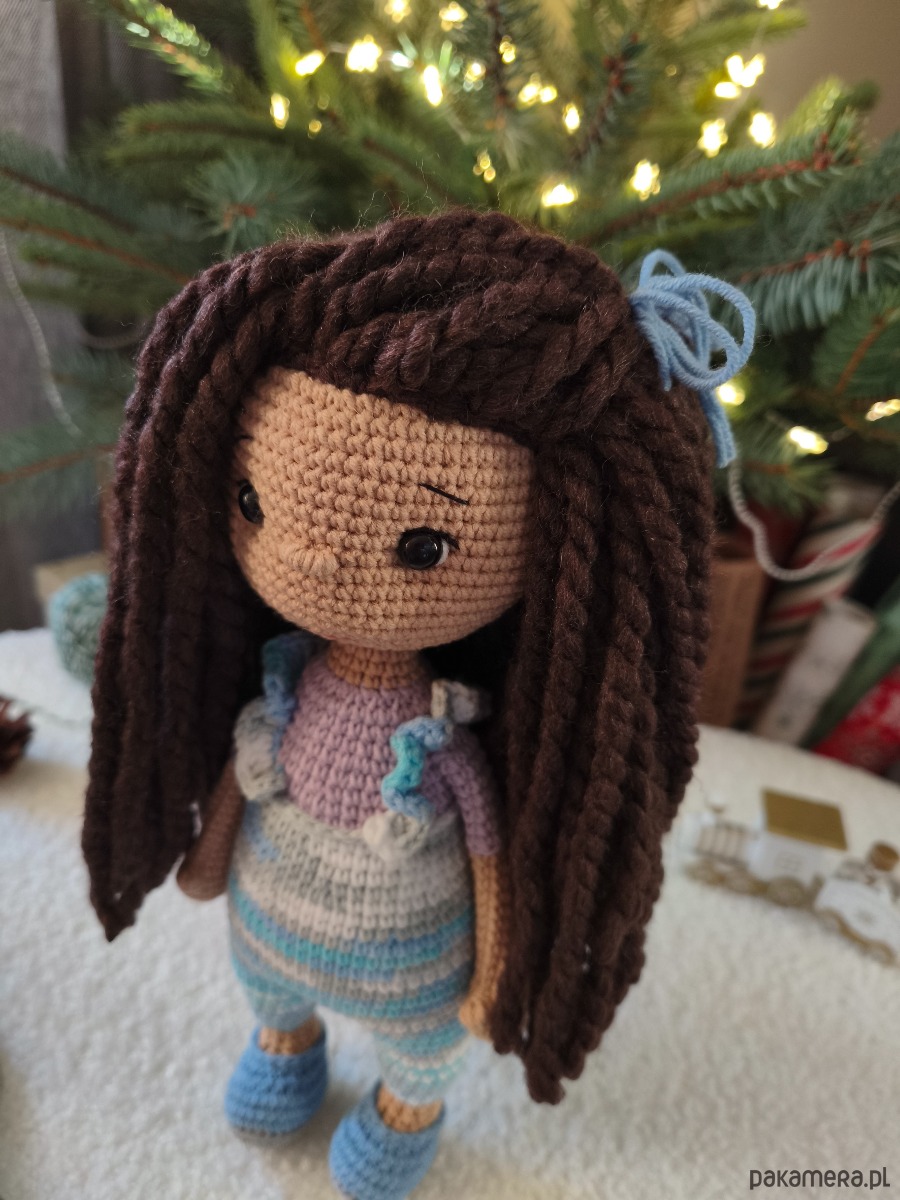 W przypadku alergii na wełnę mogę wykonać wersję z włosami wyszydełkowanymi z włóczki półbawełnianej — na indywidualne zamówienie.