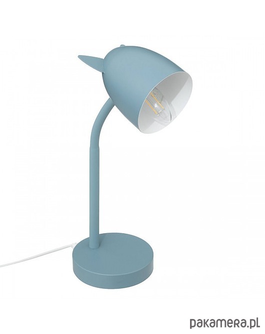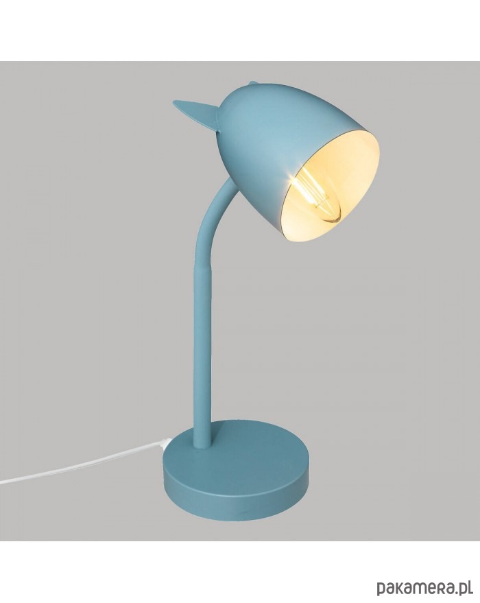 Wesoła lampka na biurko, wykonana z metalu. Klosz udekorowany zabawnymi uszkami. Dekoracyjny akcent w pokoju dziecka. Idealna do pracy przy biurku, czytania książki w kąciku czytelniczym.