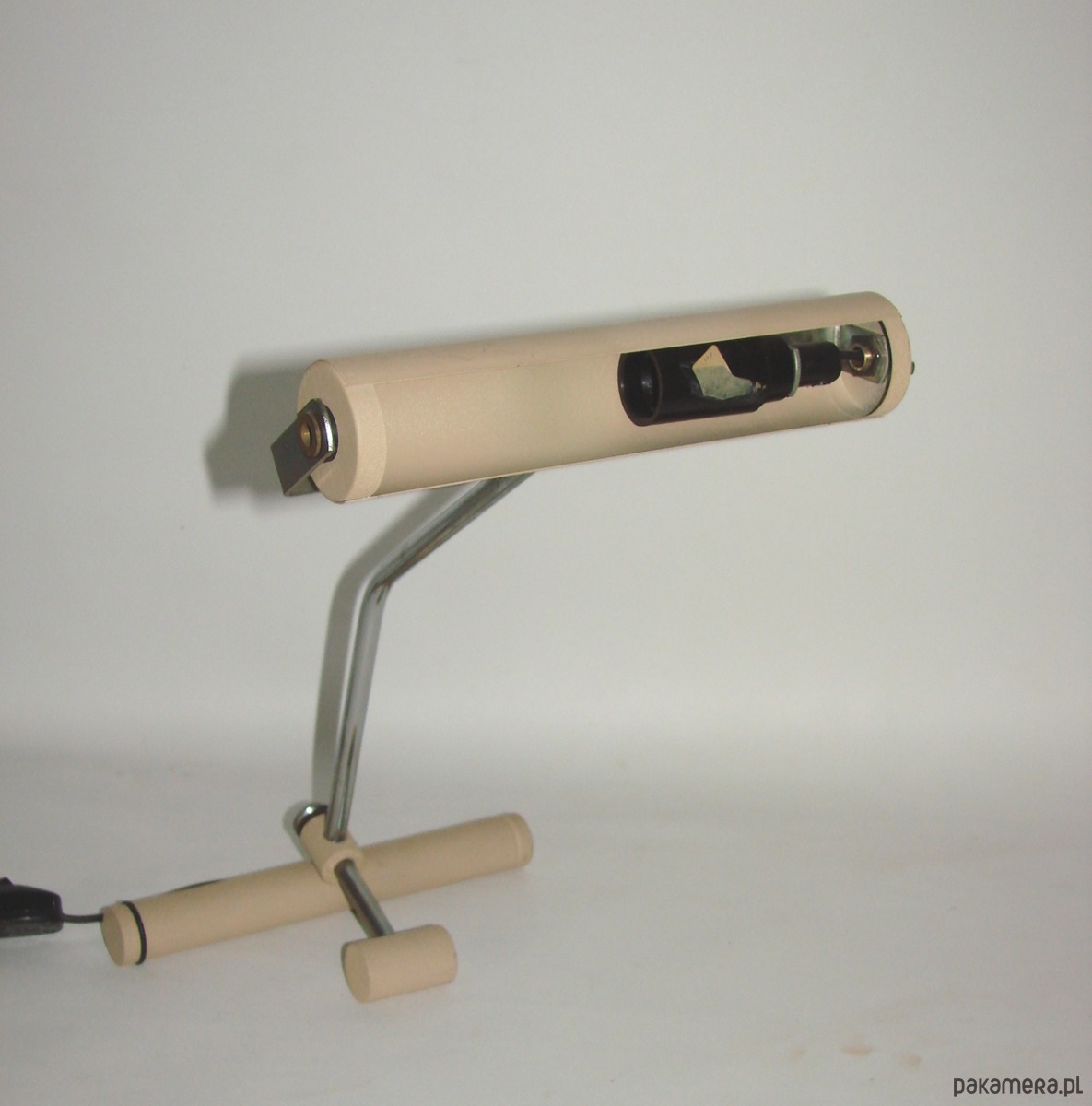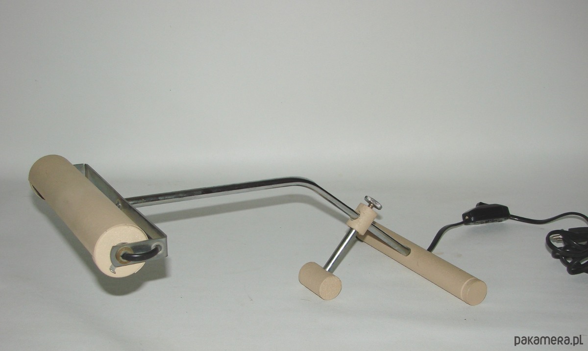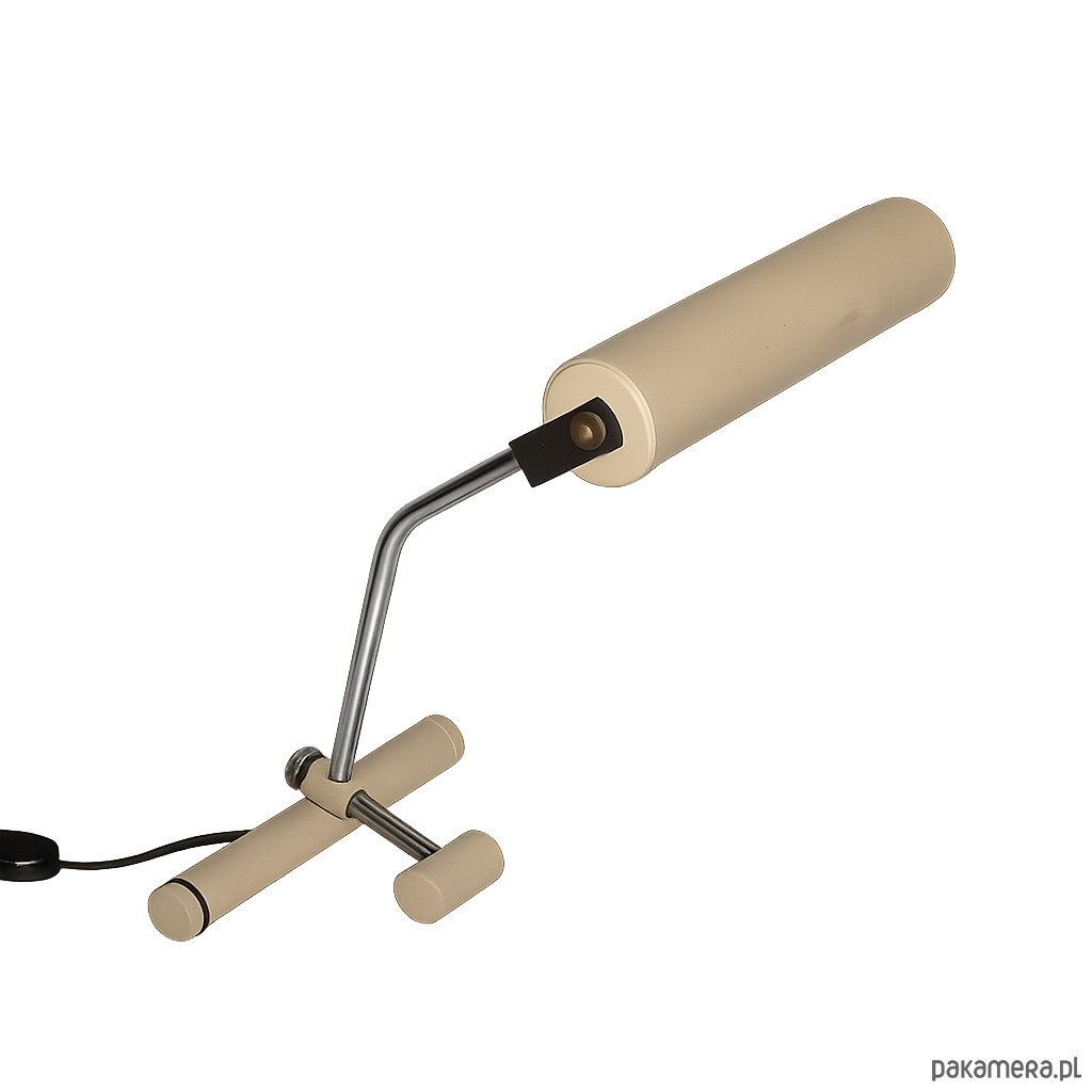 Oryginalna lampa biurkowa pochodząca z lat 70. XX wieku. Wyposażona w ruchomy klosz oraz regulowane ramię podtrzymujące, co pozwala na wygodne dopasowanie kierunku światła do indywidualnych potrzeb.