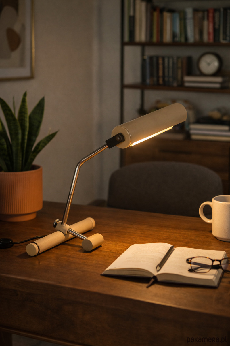 Funkcjonalna forma typowa dla designu lat 70. sprawia, że lampa doskonale sprawdzi się jako oświetlenie biurka, stolika pomocniczego lub kącika do czytania. Idealna do wnętrz vintage, retro oraz mid-century modern.