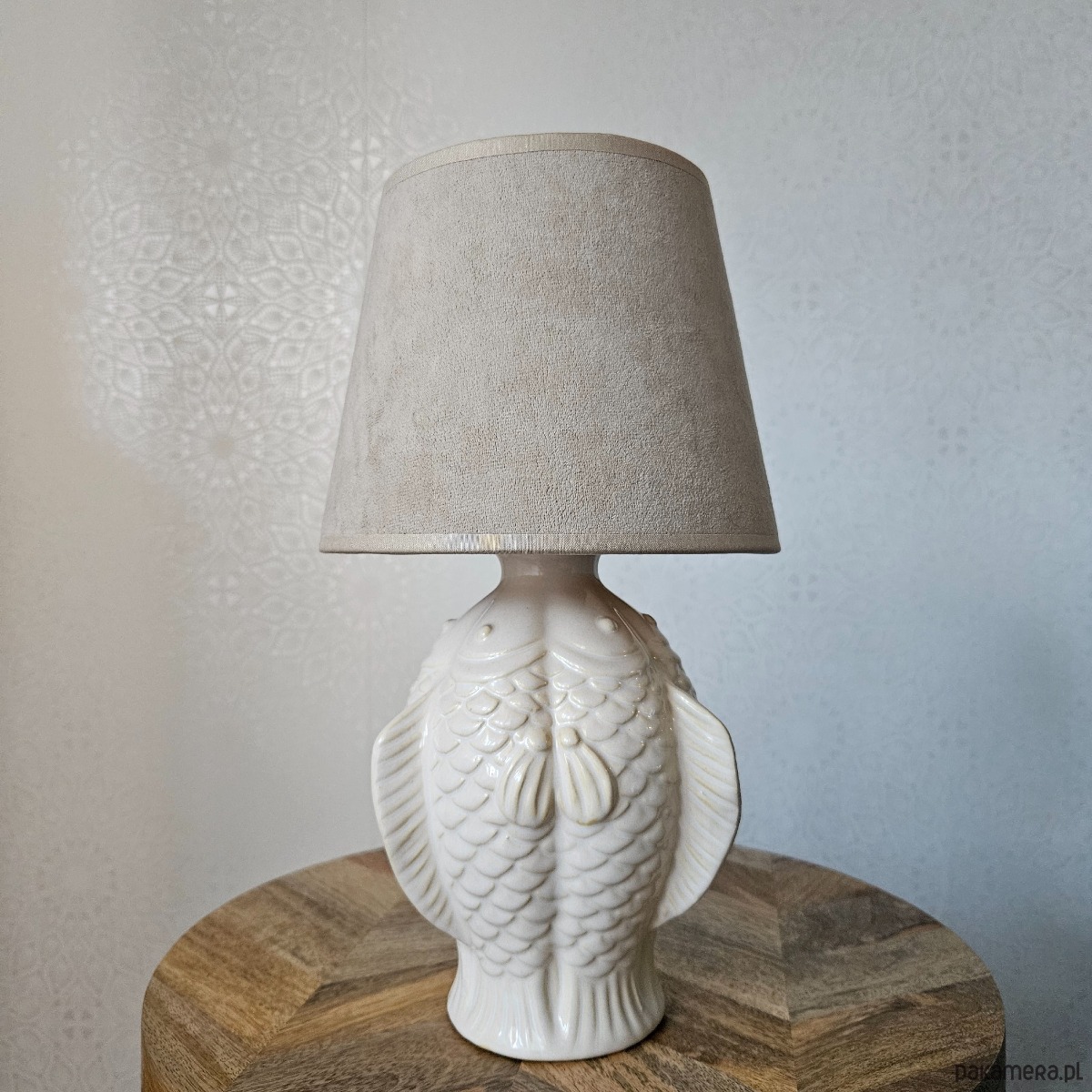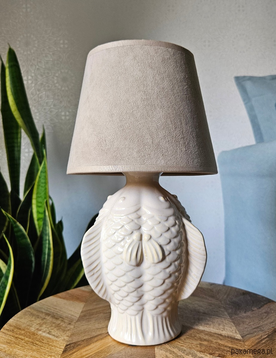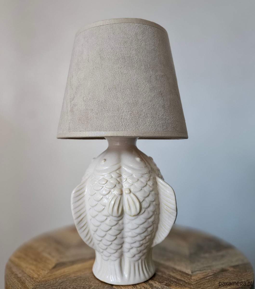 Ta jedyna w swoim rodzaju lampa została ręcznie wykonana z ceramicznego wazonu z reliefem w kształcie ryby 🐟. Ceramika z efektownym szkliwem przyciąga uwagę i wprowadza artystyczny klimat do wnętrza.