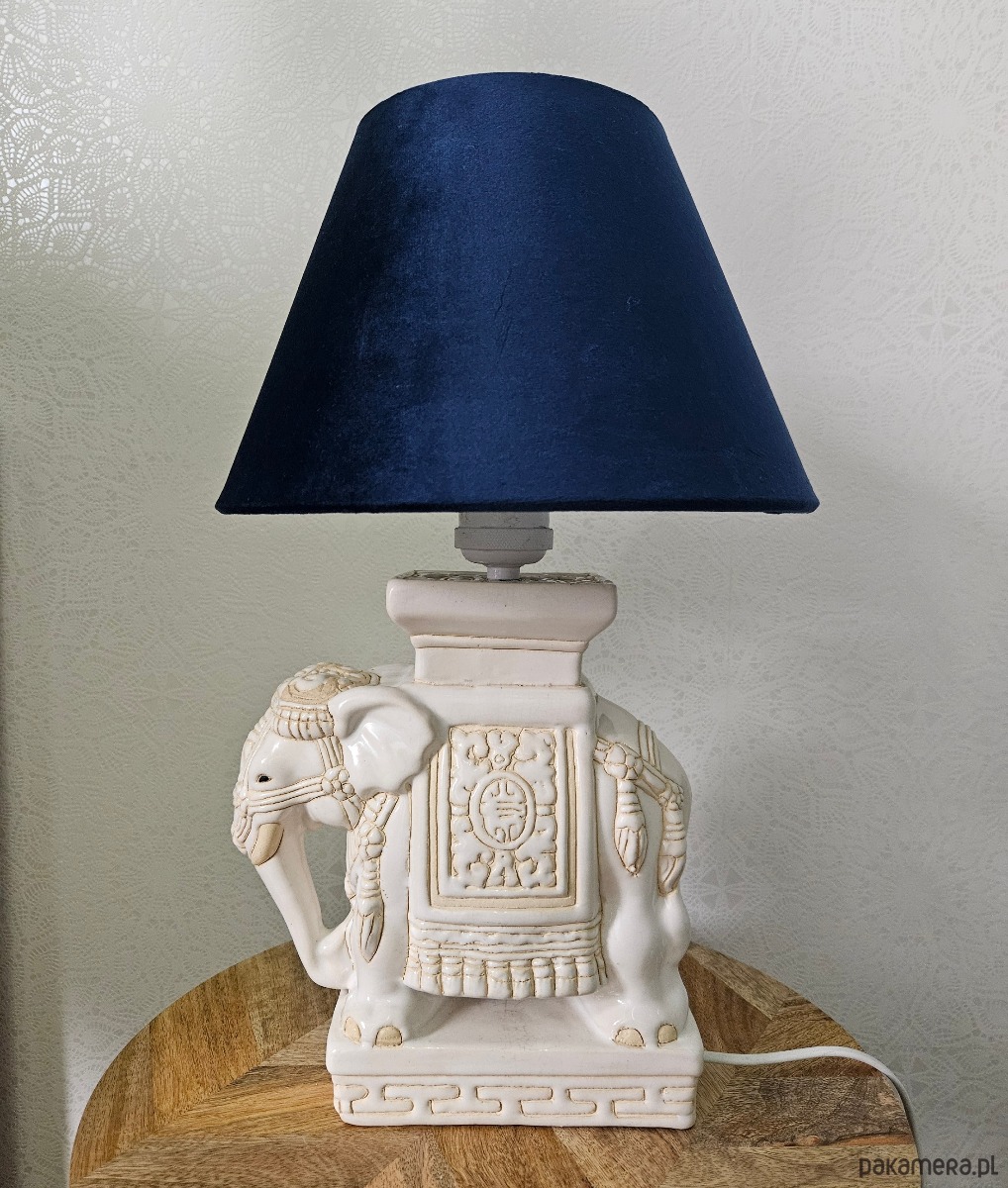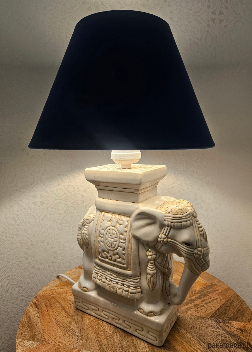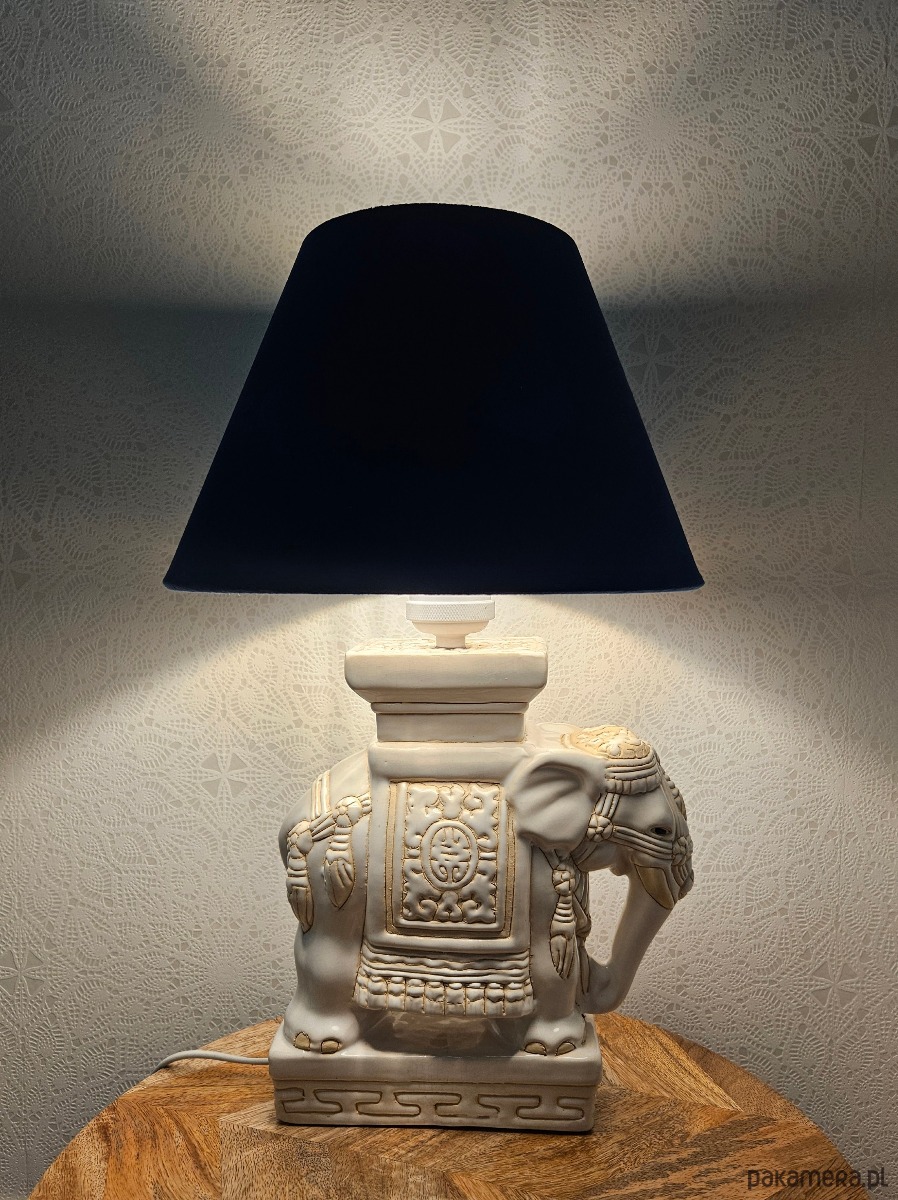 Unikatowa lampa z antyczną ceramiczną podstawą – słoń inspirowany Indiami / Dalekim Wschodem