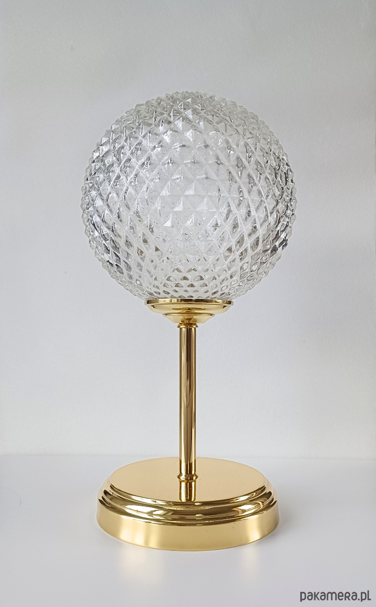 Podstawa lampy wykonana jest z polerowanego i lakierowanego mosiądzu.