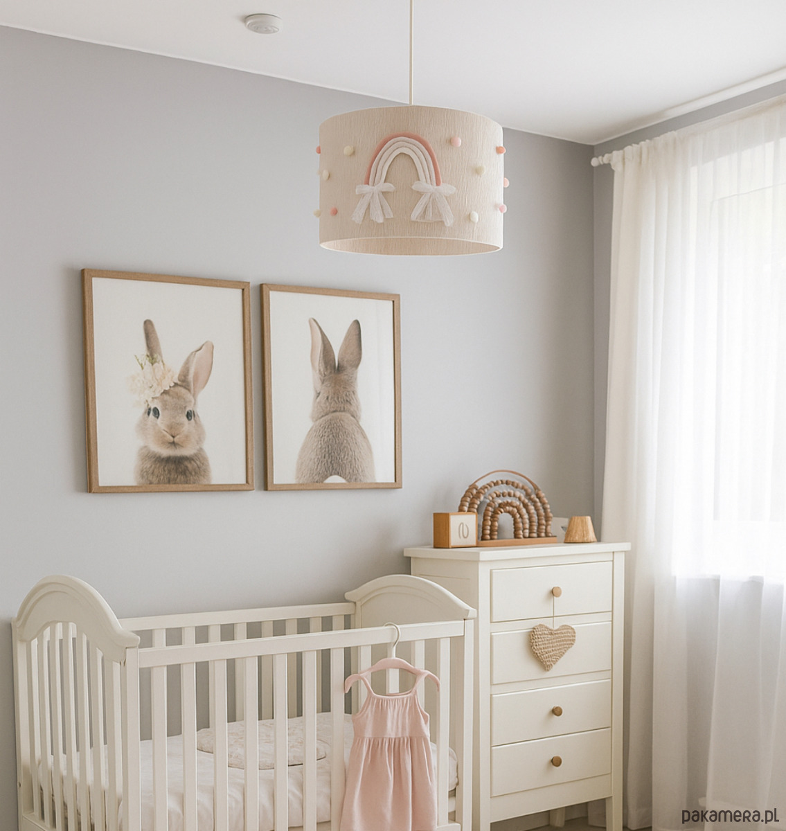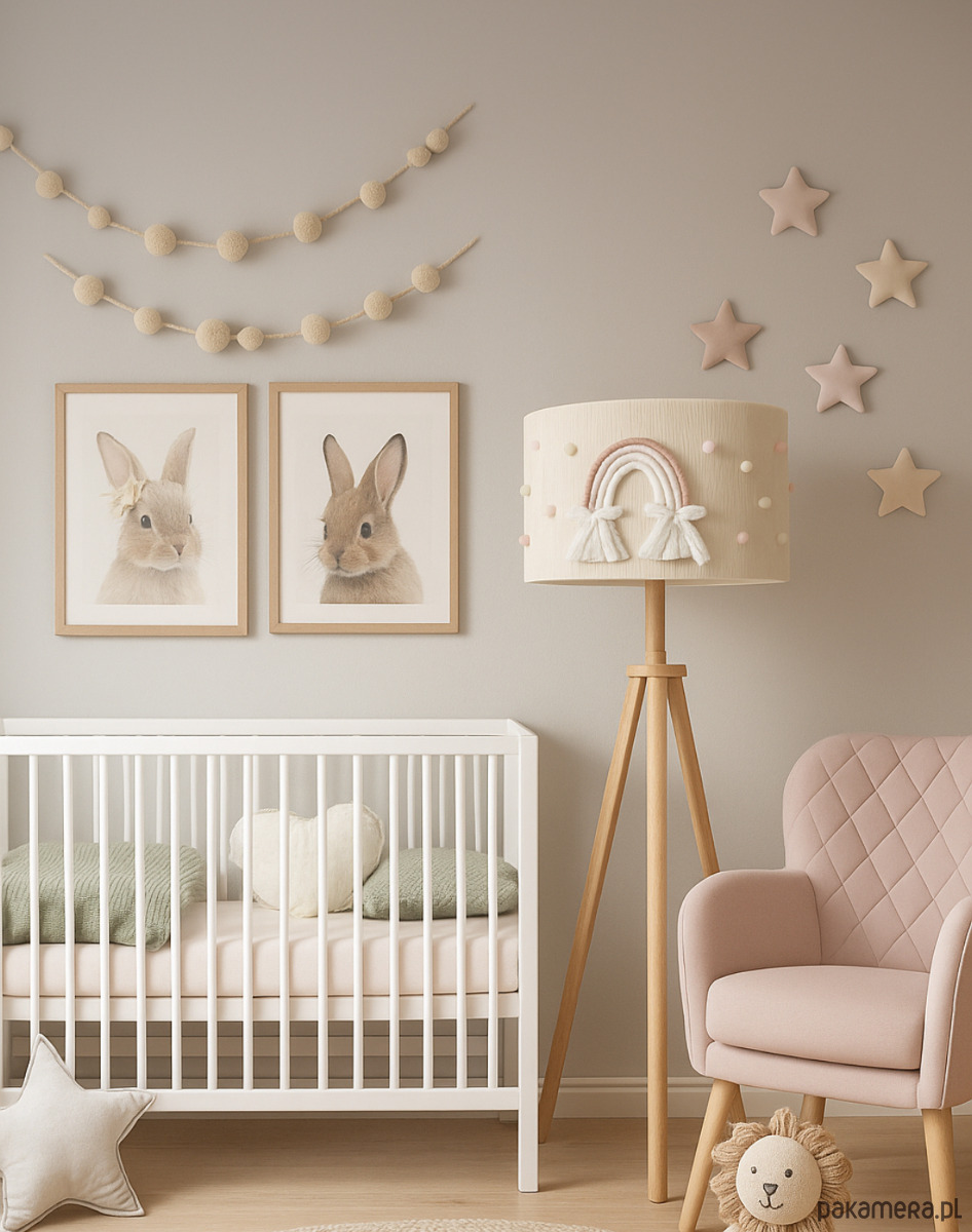 Lampa dziecięca tęcza, pomponiki, pastele