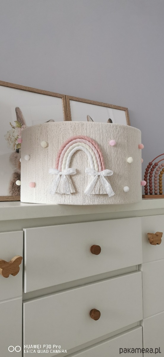 Sprzedam ręcznie pleciona lampę do pokoju dziecięcego, lampa zawiera dwie tęczę i mini pomponiki w kolorze pastelowym.