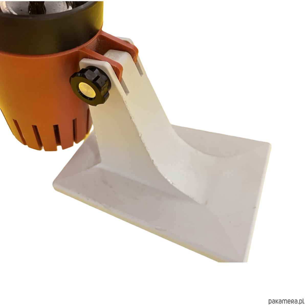 Ładny, dekoracyjny model z plastikową podstawą, która jest regulowana, dzięki czemu można regulować kąt lampy.