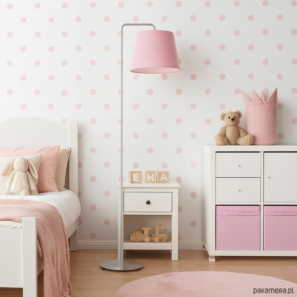Lampa podłogowa dla dzieci RIJAD z różowym abażurem