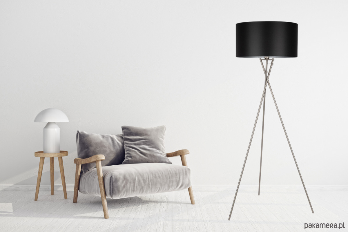 Zjawiskowa lampa na trójnogu!Lampa stojąca na trójnogu satynowym z dużym czarnym abażurem o średnicy 50 cm to elegancka i designerska propozycja oświetleniowa, która doskonale wpisuje się w nowoczesne oraz industrialne wnętrza.Dzięki swojemu minimalistycznemu designowi oraz dużej średnicy abażuru, lampa ta doskonale nadaje się do salonów, sypialni czy biur, gdzie stanie się zarówno praktycznym źródłem światła, jak i stylowym dodatkiem do wystroju pomieszczenia.Czarny abażur oraz trójnóg w kolorze czarnym nadają lampie elegancji i charakteru, co sprawia, że będzie doskonałym wyborem dla osób ceniących nowoczesny design oraz wysoką jakość wykonania. Jest to również idealna propozycja dla osób poszukujących stylowego oświetlenia, które wyróżni się w pomieszczeniu i stanie się jego centralnym punktem.