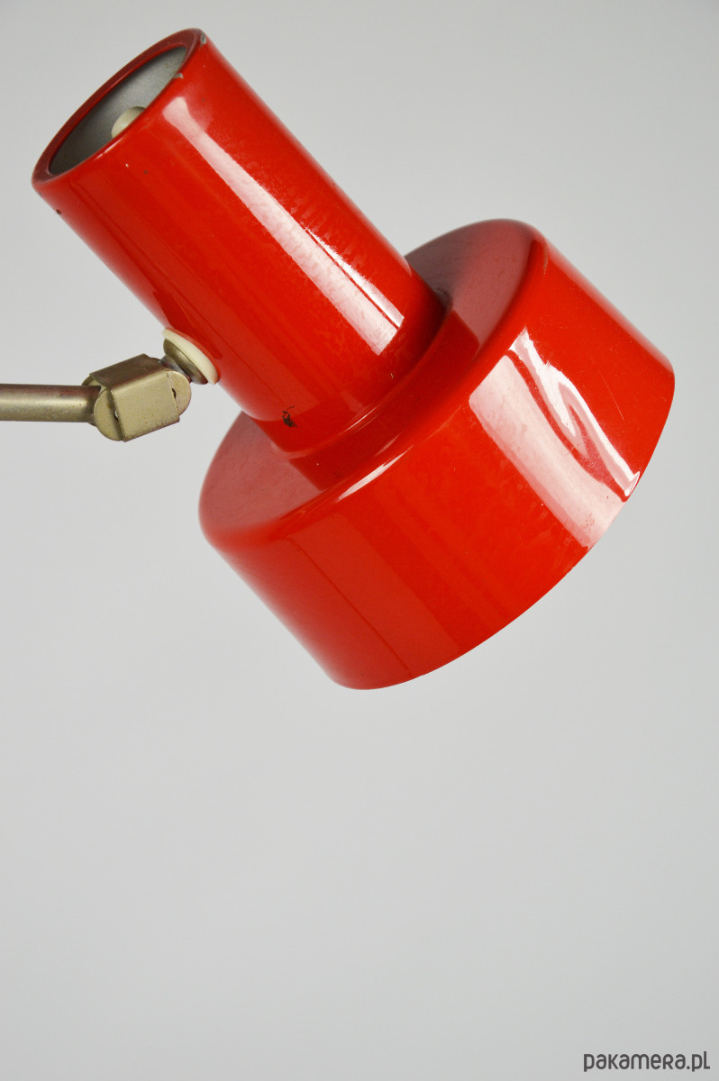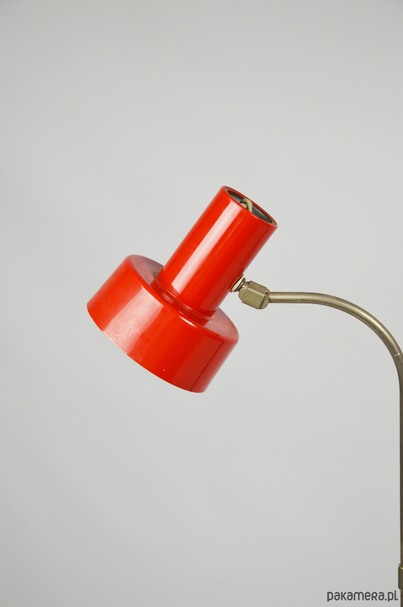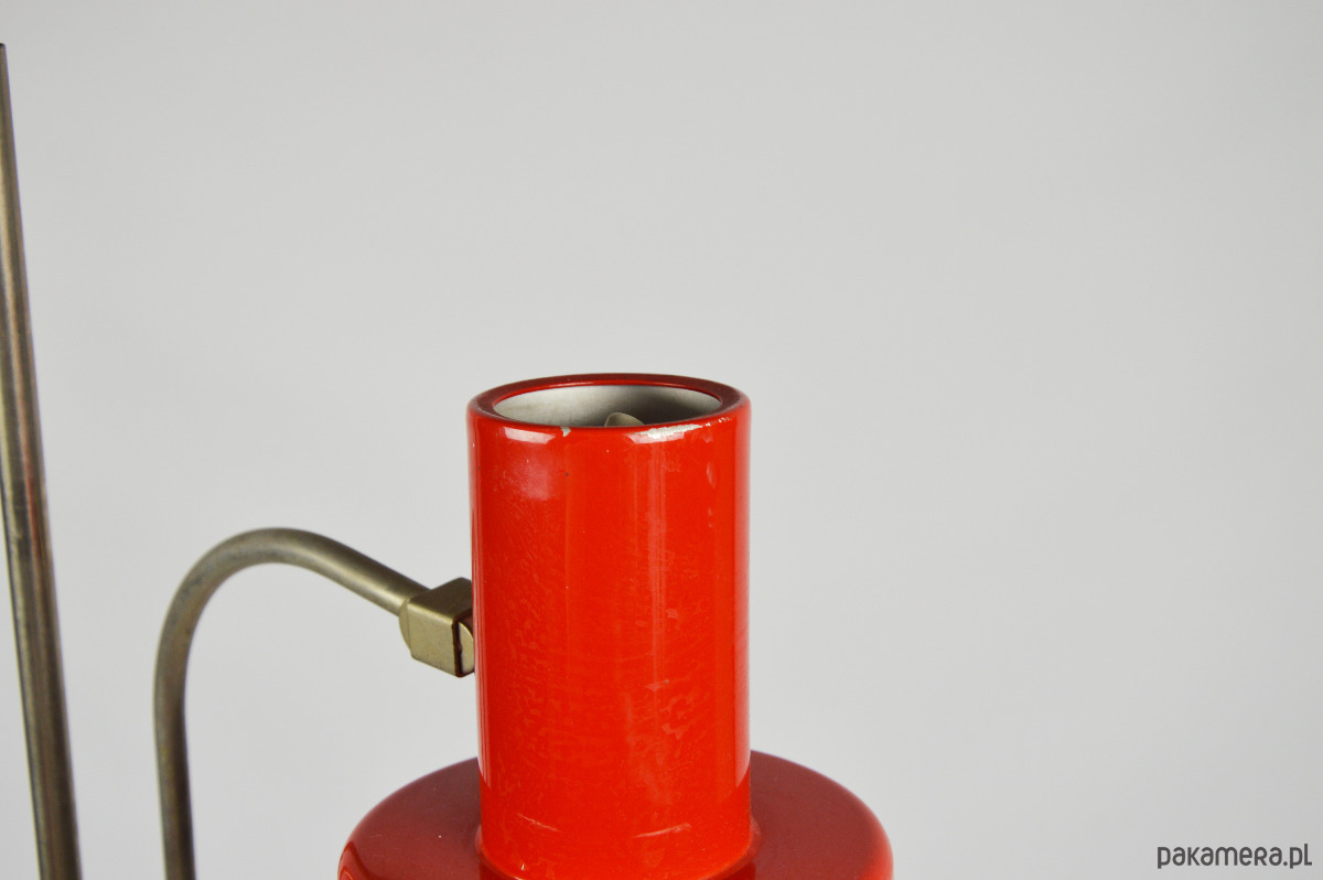 Lampa podłogowa wyprodukowana przez Karl Max Stadt w latach 70. Lampa posiada dwa klosze, które można umieścić na różnej wysokości oraz zapalić niezależnie od siebie. Stan zachowania dobry, widoczne rysy i otarcia.