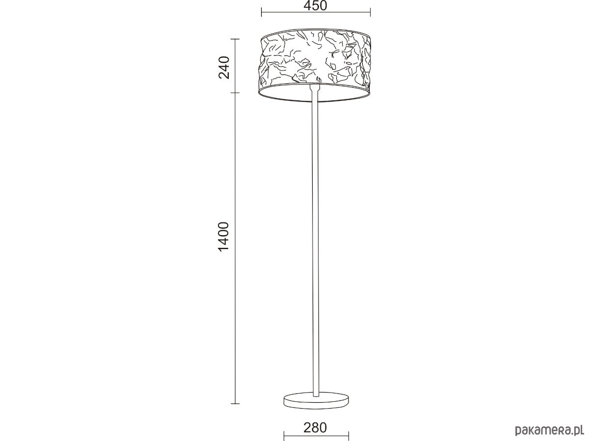Lampa: średnica 28 cm wysokość 142 cm Abażur: średnica 45 cm wysokość 24 cm Całość: wysokość 164 cm