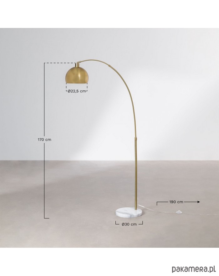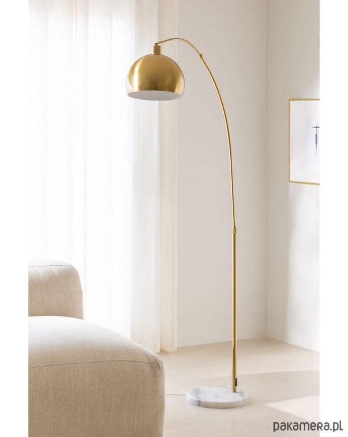 Prosta, elegancka lampa podłogowa. Wykonana z metalu w kolorze szczotkowanego złota. Stabilna podstawa to naturalny marmur.