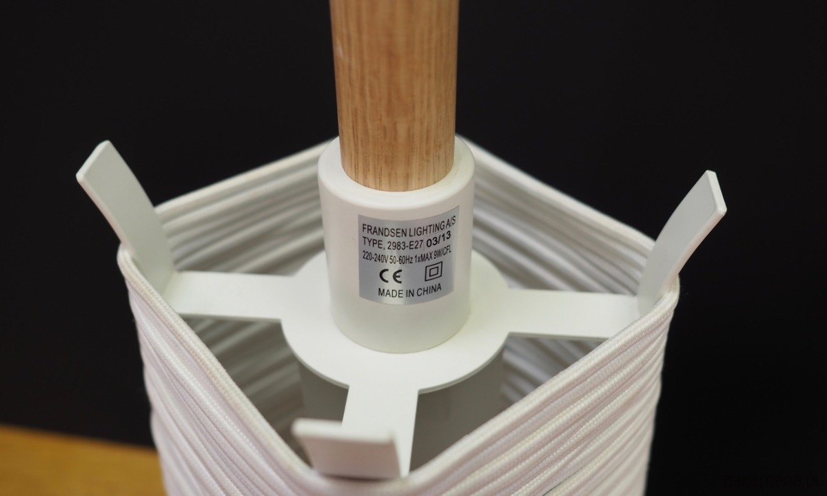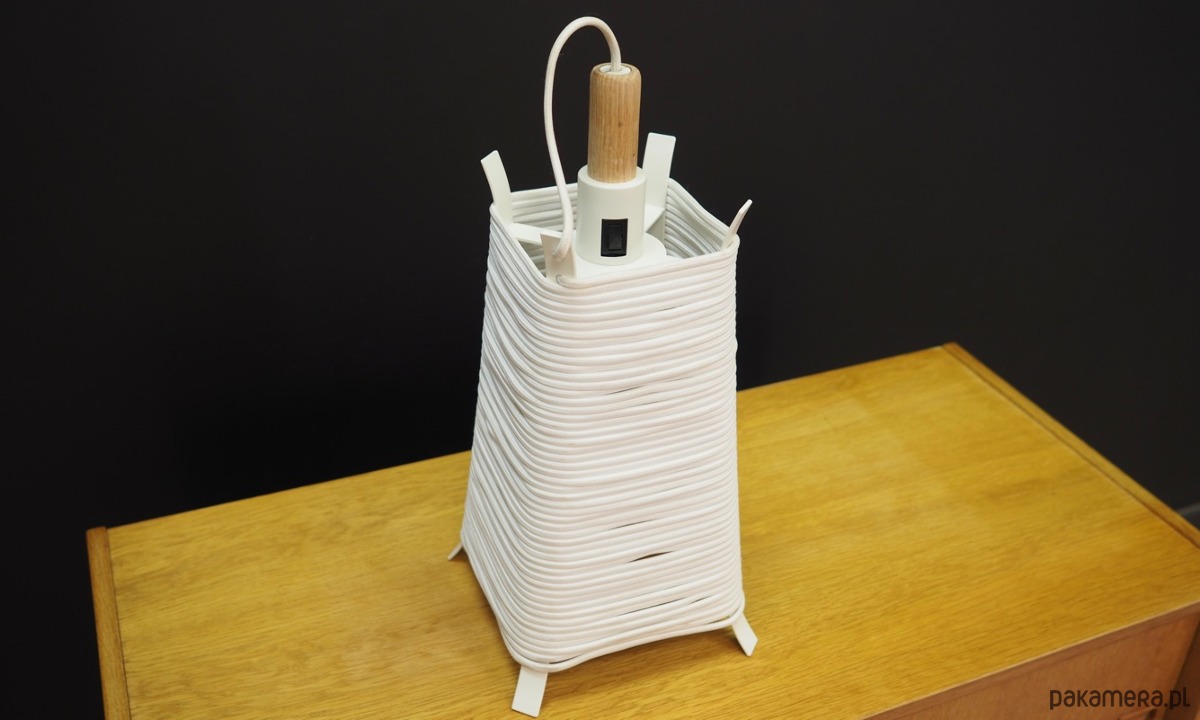 Wykonana z metalu, owinięta kablem w oplocie w kolorze białym.