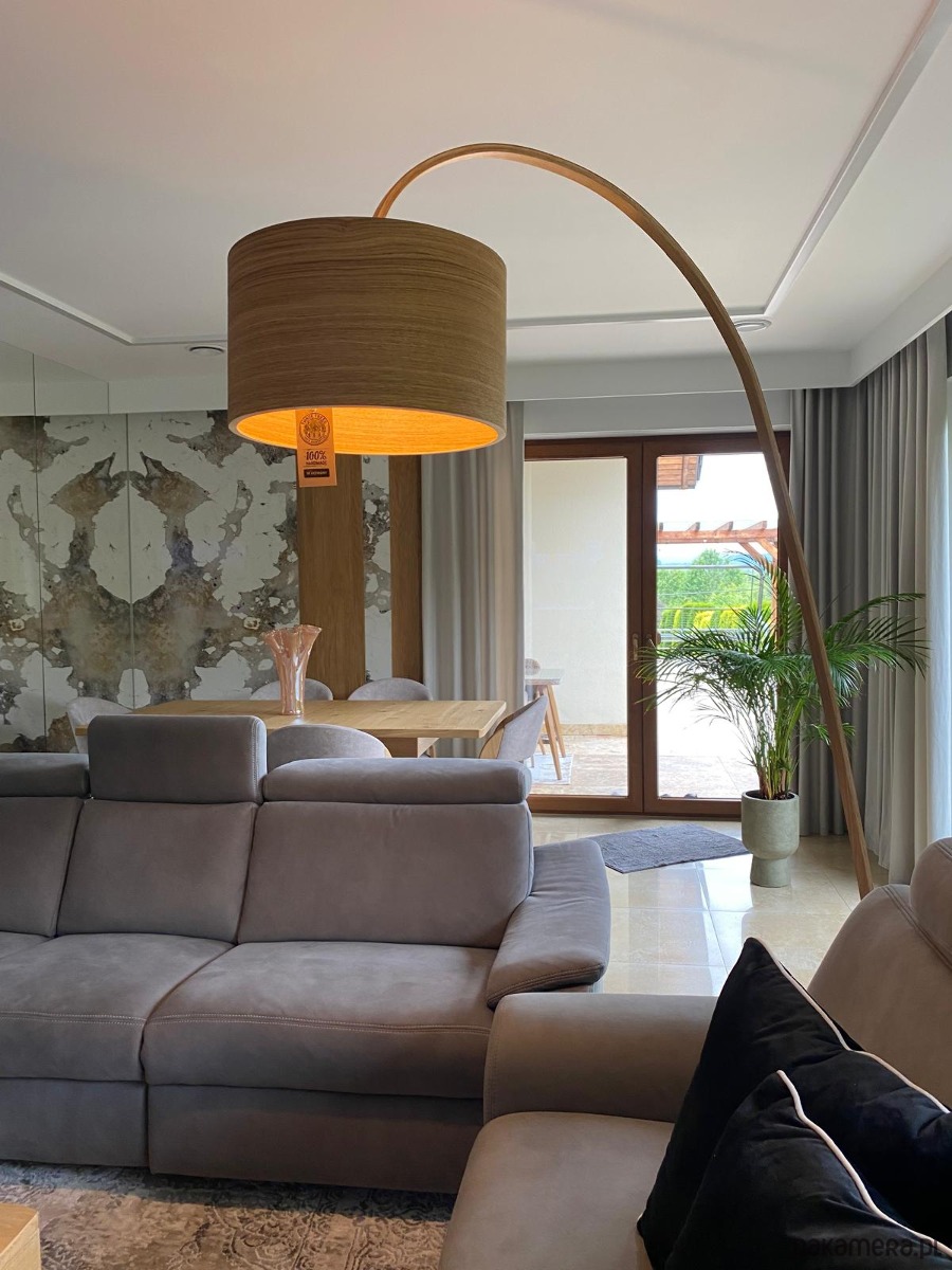 Lampa łukowa Leea Yoga to wyjątkowa lampa wykonana w całości ręcznie z dębu oraz podstawy z płomieniowanego czarnego granitu. Abażur zrobiony jest z naturalnego forniru dębowego . Noga to gięty dąb wykończony naturalnymi olejowoskami. Lampa swoją formią i kształtem nawiązuje do najlepszych trendów we wzornictwie i designie oświetleniowym. Dając ciepłe i naturalne światło wprowadza do wnętrza klimat i atmosferę spokoju i relaksu. Forma i kształt lampy powoduje że nie jest ona tylko źródłem światła ale stanowi również element dekoracyjny i jakościowy we wnętrzu. Czarna granitowa podstawa dodaje lampie elegancji i podkreśla jej naturalne wykonanie.