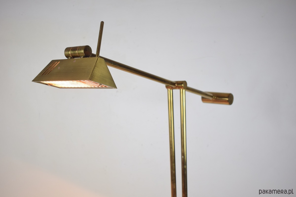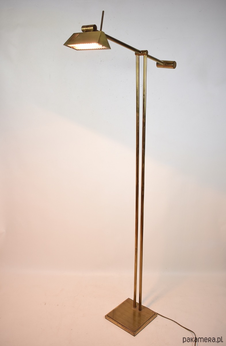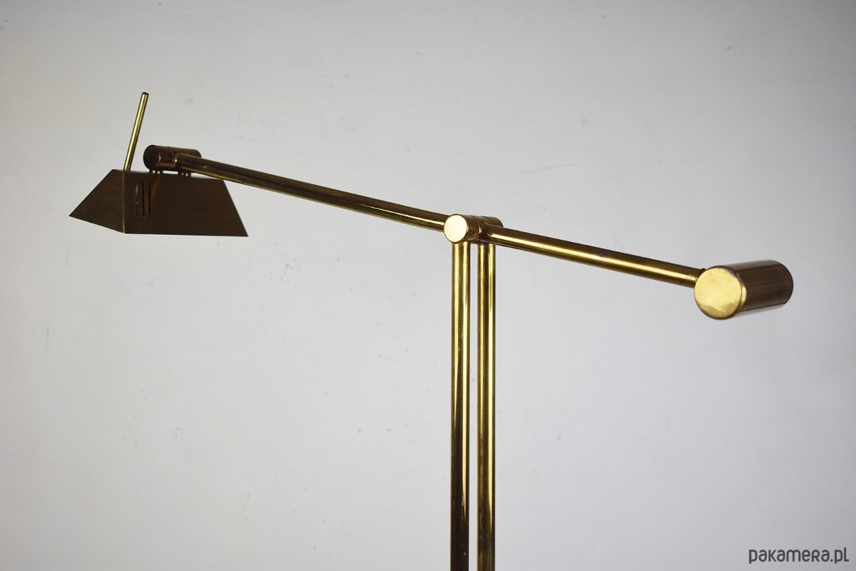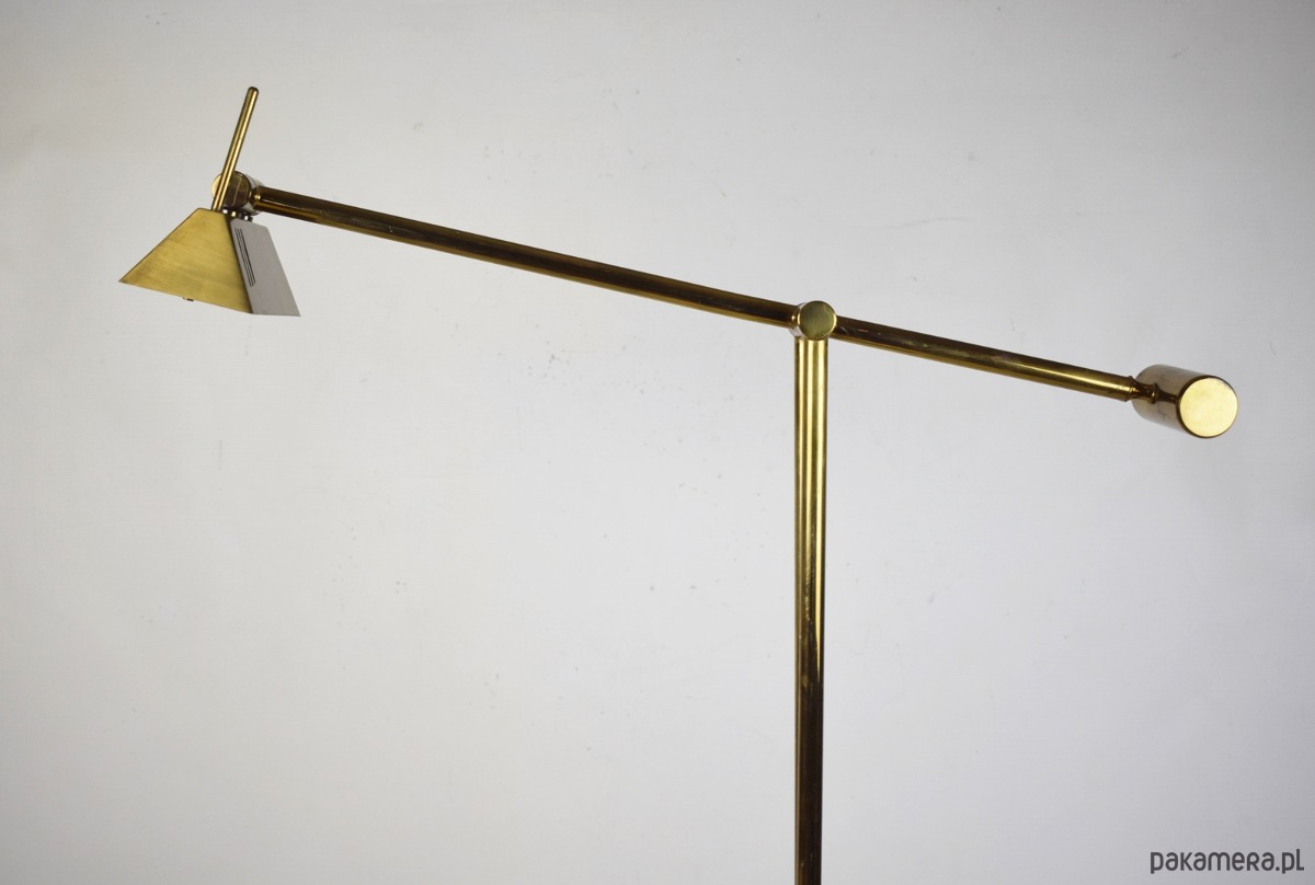 Odkryj ikonę designu Mid-Century Modern – mosiężną lampę podłogową z systemem przeciwwagi, wyprodukowaną przez renomowaną niemiecką manufakturę Hillebrand-Leuchten w latach 70. XX wieku.