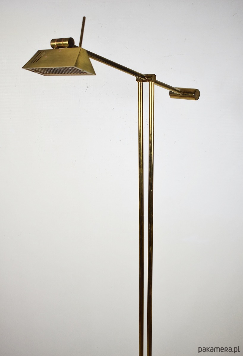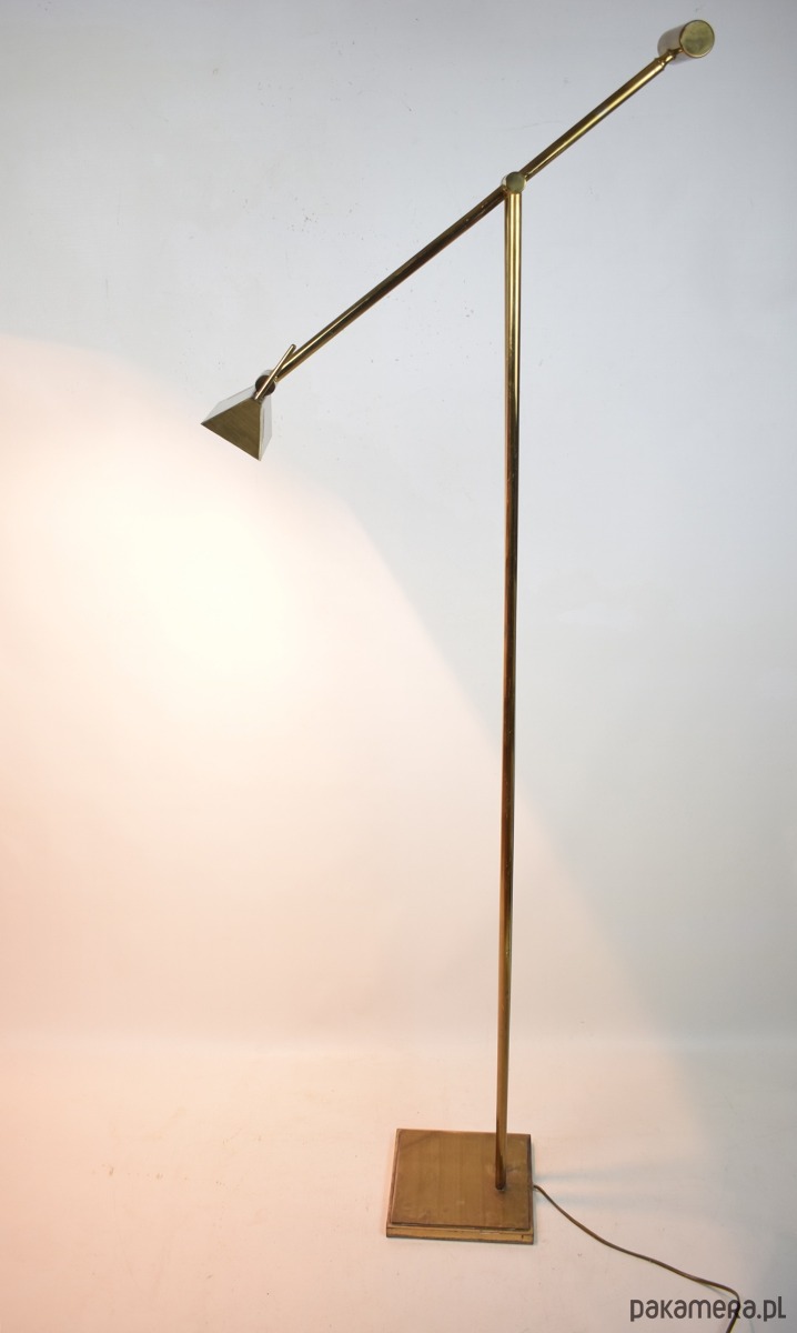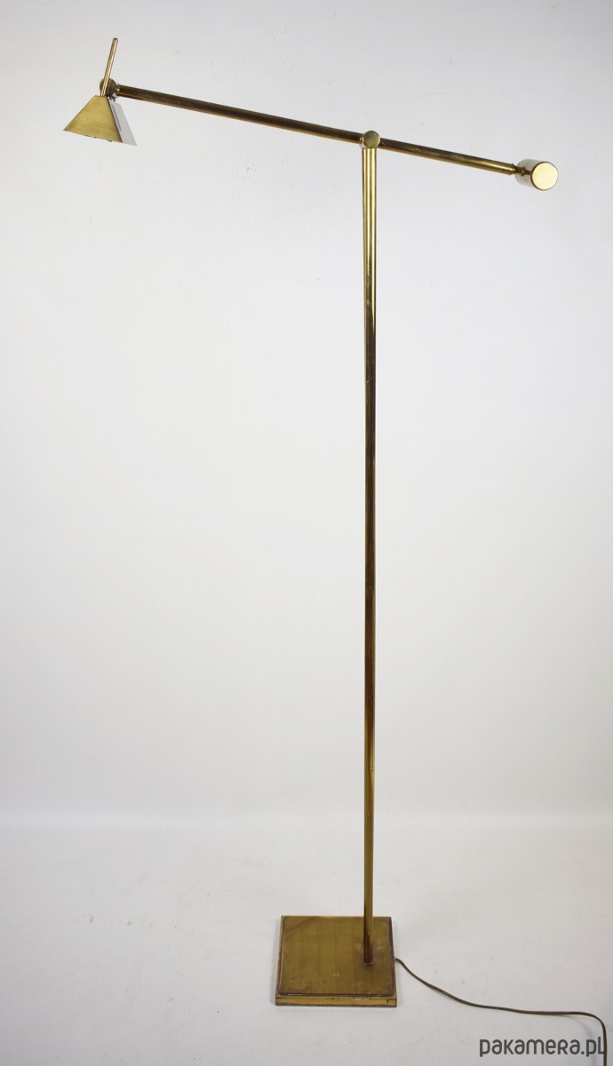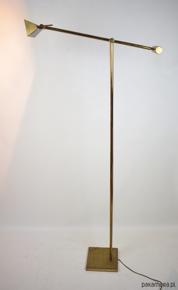 Odkryj ikonę designu Mid-Century Modern – mosiężną lampę podłogową z systemem przeciwwagi, wyprodukowaną przez renomowaną niemiecką manufakturę Hillebrand-Leuchten w latach 70. XX wieku.